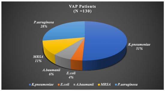 Ventilator-associated pneumonia (VAP) is a type of lung infection that develops in patients who are on mechanical ventilation, which is a life-support intervention used in critical care settings. VAP is considered to be a nosocomial or healthcare-associated infection []. It frequently occurs as a complication in patients who are critically ill, particularly manifesting after a period of at least 48 h of being subjected to mechanical ventilation []. The incidence rates of VAP can vary depending on factors such as the population studied, healthcare settings, and regional differences, typically ranging from 8% to 28% among mechanically ventilated patients in intensive care units []. VAP is a significant concern in hospitals as it can lead to longer hospital stays, increased healthcare costs, and even life-threatening situations [].
