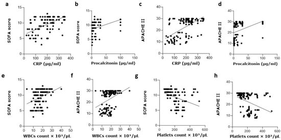 3.6. The Correlations between SOFA and APACHE II Scores and Laboratory Values