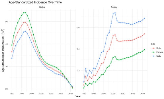 3.1. Comparison of Age-Standardized Incidence Trends in Türkiye with Global Averages