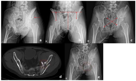 - Young, J.W.; Burgess, A.R.; Brumback, R.J.; Poka, A. Pelvic fractures: Value of plain radiography in early assessment and management. Radiology 1986, 160, 445–451. [Google Scholar] [CrossRef] [PubMed]