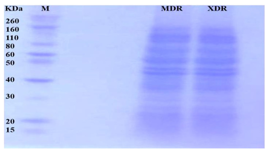 Proteins from MDR and XDR S. Typhi isolates: Proteins were extracted, quantified, and loaded on 10% SDS-PAGE. The gel bands were excised for LC MS/MS analysis.