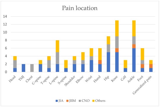 As whole-body MRI is becoming increasingly available and will be increasingly used in clinical practice in the future, the database of patients who underwent the scan will expand. This will provide the opportunity for further analysis, including the relationship of the location of individual symptoms versus radiological findings. A study conducted at another medical center in Poland by Lanckoroński et al. [] analyzed the whole-body MRIs of pediatric patients with CNO, JIA, their overlapping syndrome and non-specific arthropathy. The paper focused on radiological findings, and compared to our study, did not describe in detail the clinical symptoms and the results of laboratory tests. In addition, our study also included patients with JIIMs and other diseases that could be diagnosed by MRI. It is important to consider imaging studies as part of the patient’s assessment in relationship with the clinical presentation of the disease and laboratory findings in order to avoid unnecessary treatment of incidental radiological findings [,].
