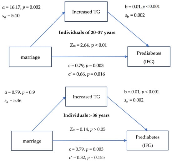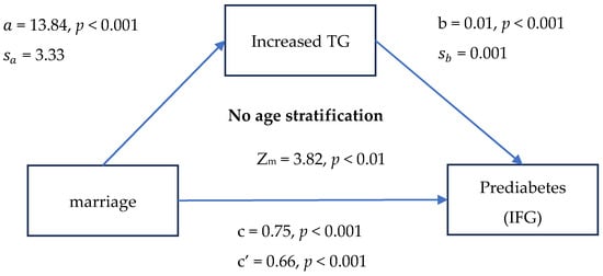 APA StyleChen, Y.-H., Lin, J.-J., Tang, H.-M., Yang, C.-W., Jong, G.-P., & Yang, Y.-S. (2024). Relationship between Marriage and Prediabetes among Healthcare Workers: Mediating Effect of Triglycerides. Medicina, 60(9), 1418. https://doi.org/10.3390/medicina60091418