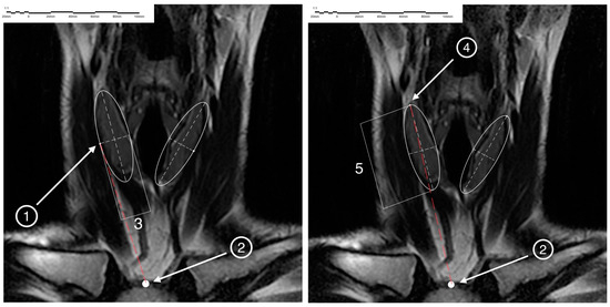 Anthropometry data and the results of magnetic resonance imaging (MRI) of the neck organs and anatomical structures of 100 healthy volunteers, including 55 (55%) females and 45 (45%) males were used. The median age was 28.48–12.89 years, and the median age was 22 (min. 21; max. 32) years. The maximum age was 65 years, and the minimum age was 18 years. The criteria for inclusion in the study were being older than 18 years, the absence of diseases of the neck organs and surgical interventions on the neck that change its topography in history, and the person’s consent to be included in the study. The work was approved by the Local Ethics Committee of the I. I. Mechnikov Northwestern State Medical University of the Public Health Ministry of the Russian Federation (Protocol No. 9 of 12 December 2022).
