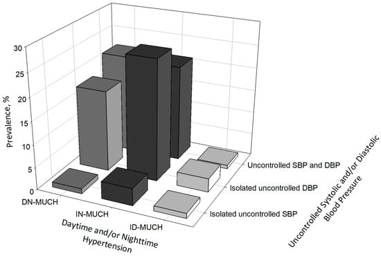 3.2. Prevalence of Isolated Nighttime Masked Uncontrolled Hypertension