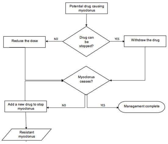 Myoclonus can be primary or secondary to infectious, metabolic, endocrine pathology, degenerative, inflammatory, toxic, genetic, and pharmacological causes []. Many examples of drug-induced myoclonus (DIM) are transient and occur in the setting of diffuse encephalopathy associated with drug toxicity, acute metabolic abnormalities, or infectious disorders []. In most cases, conducting a detailed investigation with neurophysiological studies is not practical.