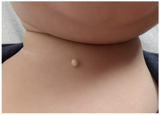 - Miller, E.; Finn, L.S.; Boos, M.D. Subcutaneous Nodule of the Midline Anterior Neck in an Infant. JAMA Otolaryngol. Head Neck Surg. 2020, 146, 196–197. [Google Scholar] [CrossRef] [PubMed]