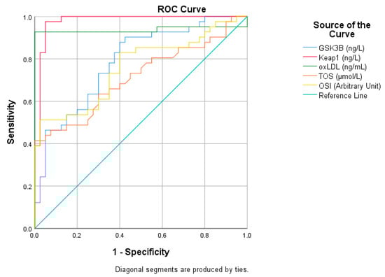 | Nrf2 (ng/mL) | 0.988 (0.968–1) | 33.36 | 0.001 | 95 | 98 |