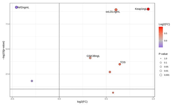 | Keap1 (ng/L) | 353.79 | 571.10 | 480.65 ± 42.24 | 153.90 | 493.54 | 257.3 ± 81.57 | 0.001 ** |