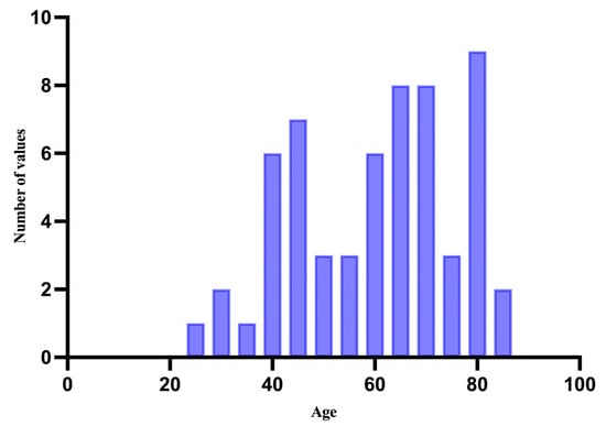 The mean age of the group was 60.15 years, with the youngest patient being 24 years old and the oldest 86 years old, with a standard deviation of 15.85 (Figure 1).
