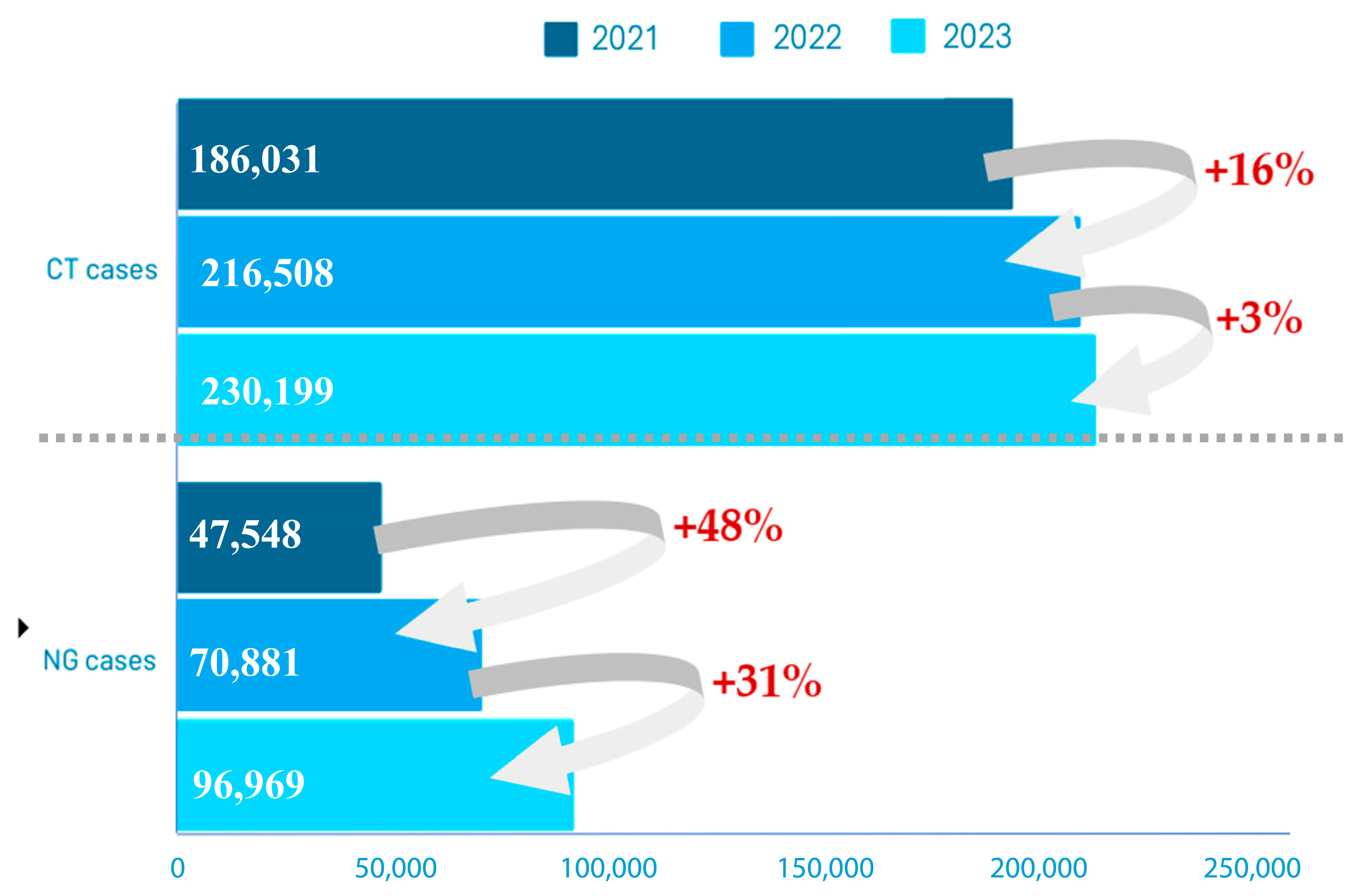 - ECDC STI Cases Continue to Rise Across Europe. Available online: https://www.ecdc.europa.eu/en/news-events/sti-cases-continue-rise-across-europe (accessed on 11 February 2025).