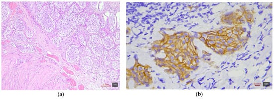 - Zinnall, U.; Weyerer, V.; Compérat, E.; Camparo, P.; Gaisa, N.T.; Knuechel-Clarke, R.; Perren, A.; Lugli, A.; Toma, M.; Baretton, G.; et al. Micropapillary urothelial carcinoma: Evaluation of HER2 status and immunohistochemical characterization of the molecular subtype. Hum. Pathol. 2018, 80, 55–64. [Google Scholar] [CrossRef] [PubMed]