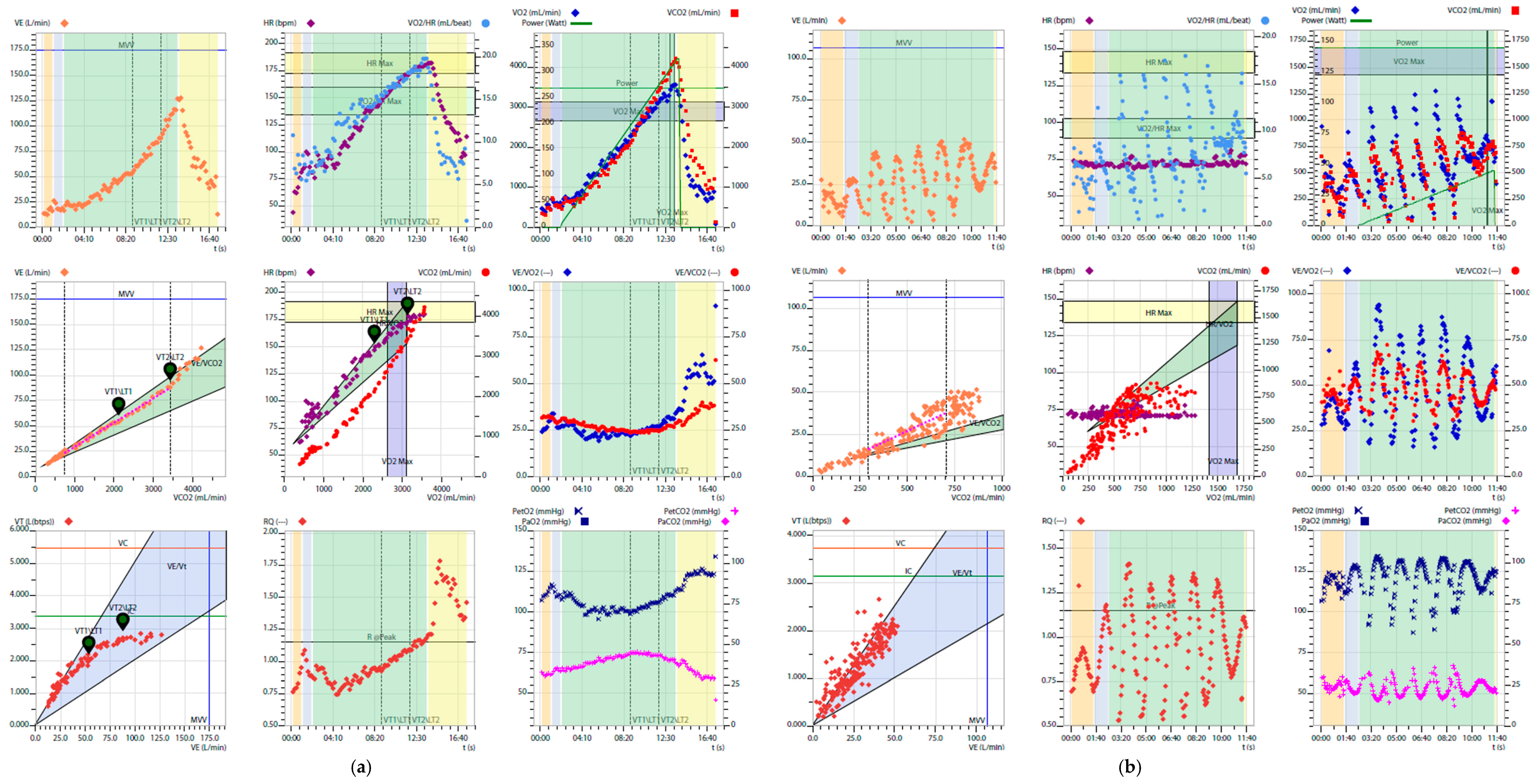 - Mezzani, A. Cardiopulmonary Exercise Testing: Basics of Methodology and Measurements. Ann. Am. Thorac. Soc. 2017, 14, S3–S11. [Google Scholar] [CrossRef]