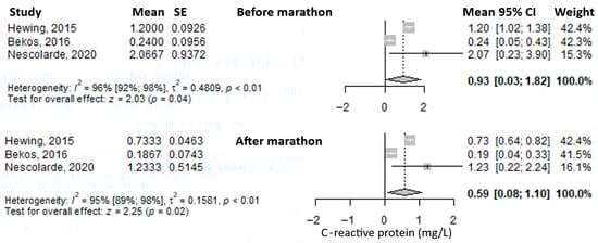 - Bekos, C.; Zimmermann, M.; Unger, L.; Janik, S.; Hacker, P.; Mitterbauer, A.; Koller, M.; Fritz, R.; Gäbler, C.; Kessler, M.; et al. Non-Professional Marathon Running: RAGE Axis and ST2 Family Changes in Relation to Open-Window Effect, Inflammation and Renal Function. Sci. Rep. 2016, 6, 32315. [Google Scholar] [CrossRef]