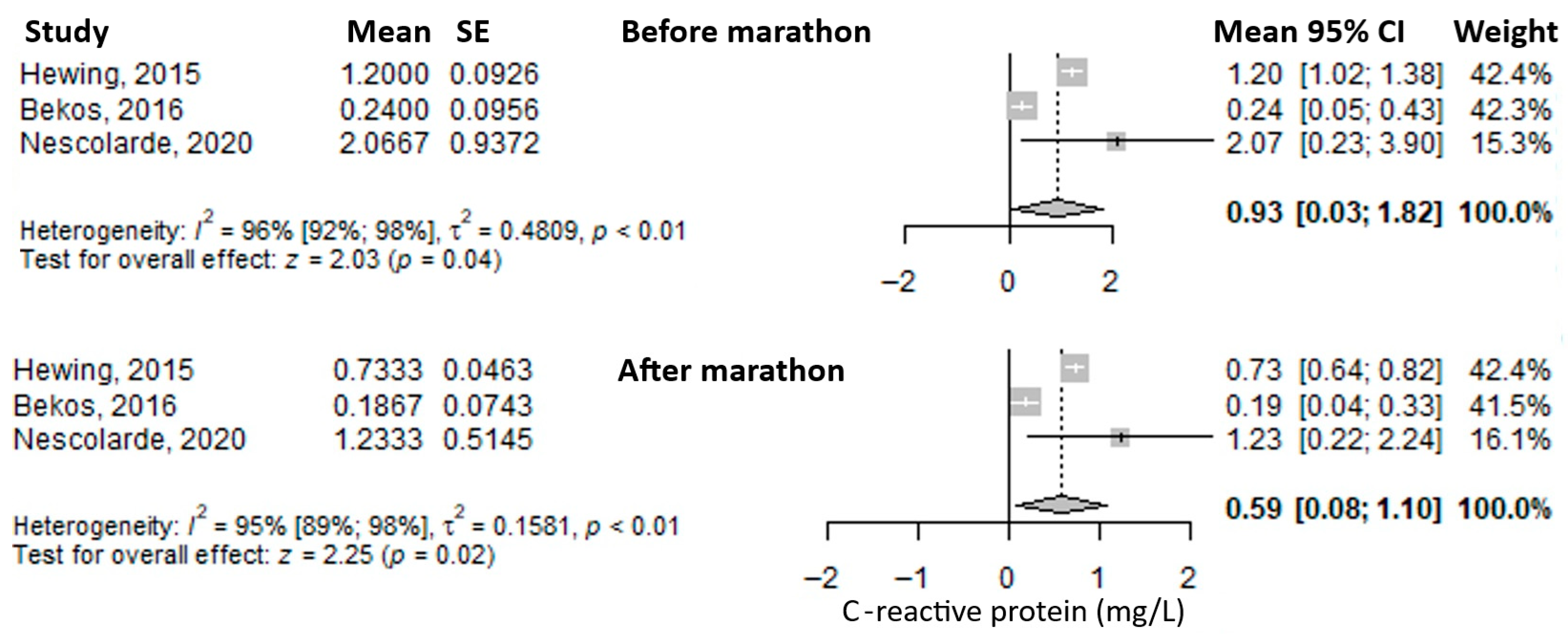 Increase post-marathon (no 24 h values) | Plasma MCP-1 | 1.00 | 2.56 | – |