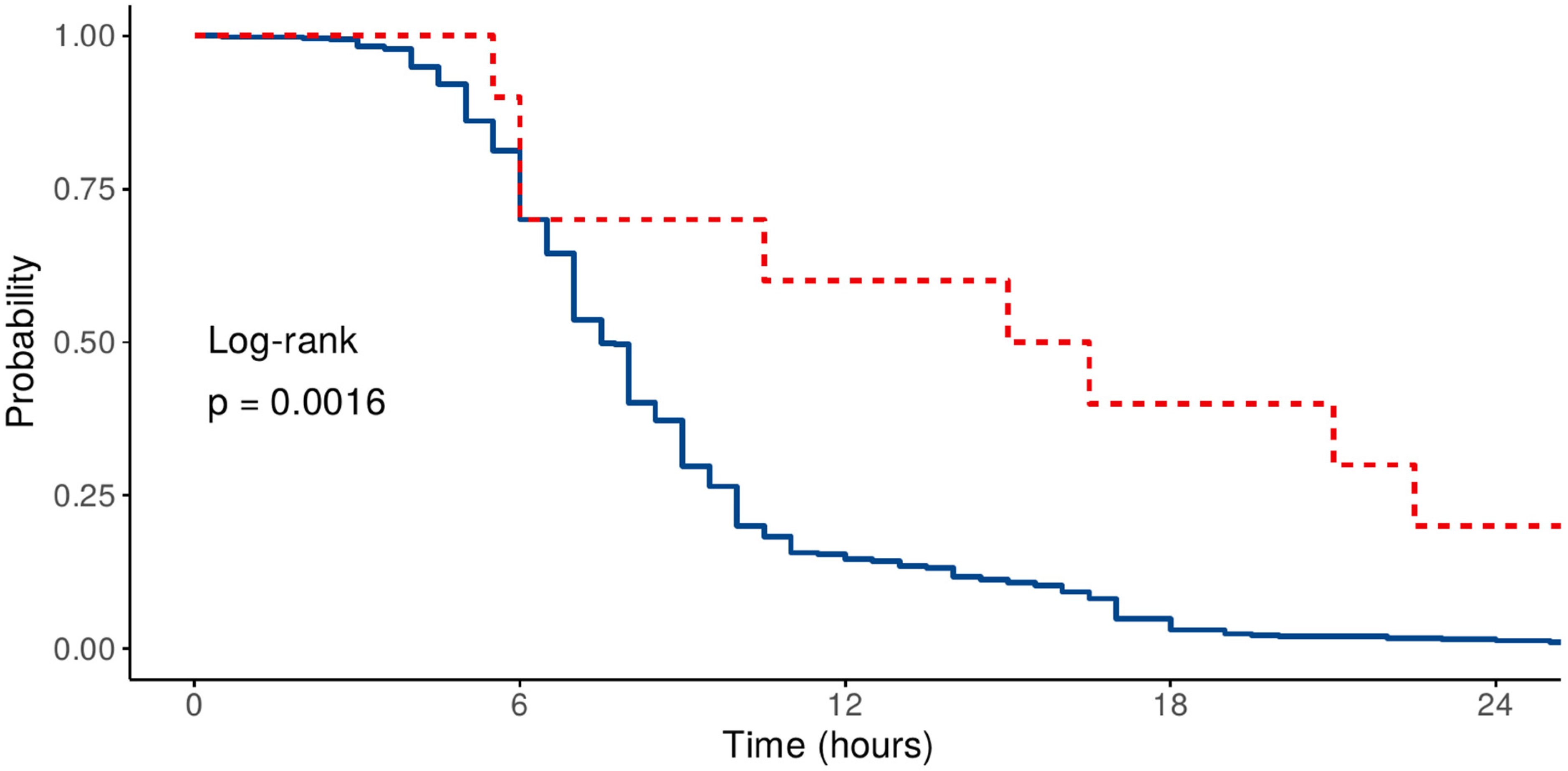 Yes | 7 (70%) | 3 (30%) | 0.15 (0.03–0.57, p = 0.007) | 0.15 (0.03–0.65, p = 0.015) | |