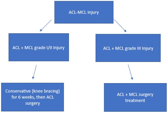 - Rao, R.; Bhattacharyya, R.; Andrews, B.; Varma, R.; Chen, A. The Management of Combined ACL and MCL Injuries: A Systematic Review. J. Orthop. 2022, 34, 21–30. [Google Scholar] [CrossRef]
