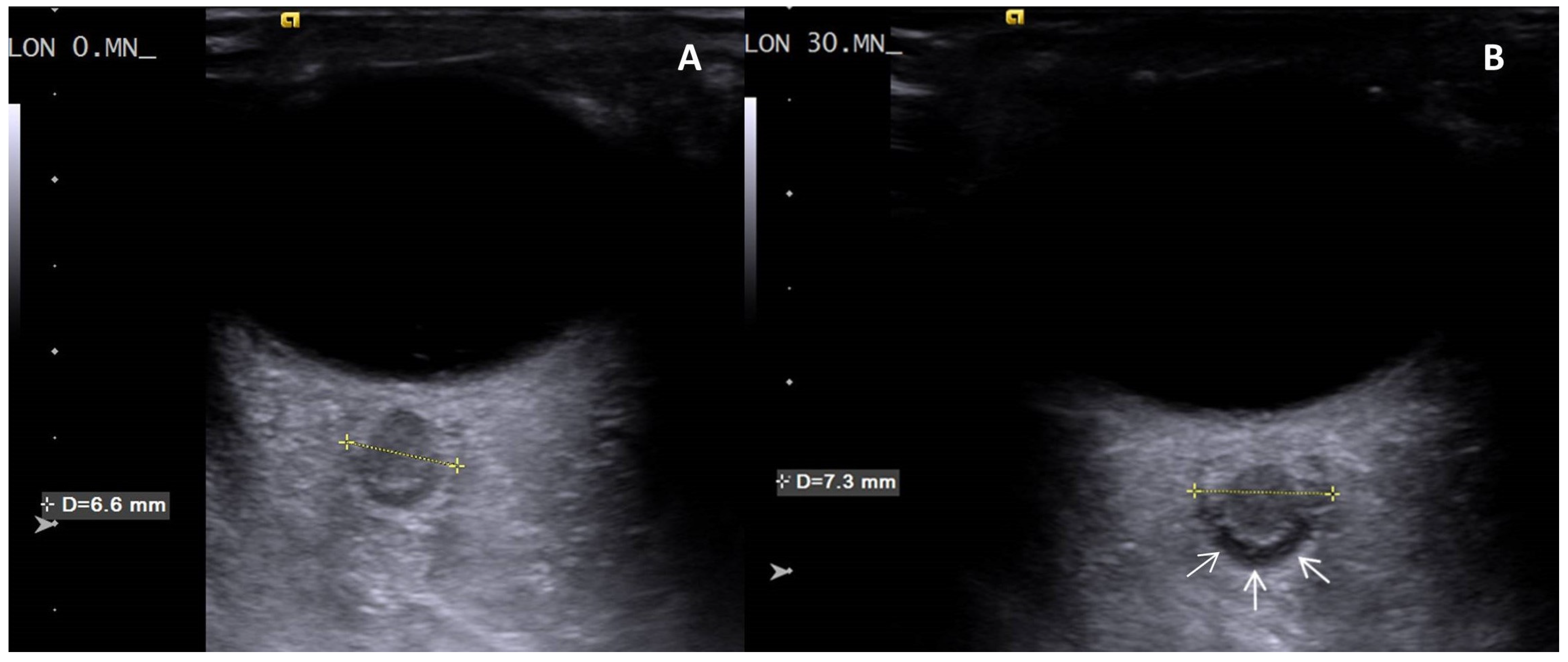 Left ONSD | 6.151 ± 0.836 | 7.020 ± 0.664 | 0.630/9.840/<0.001 |