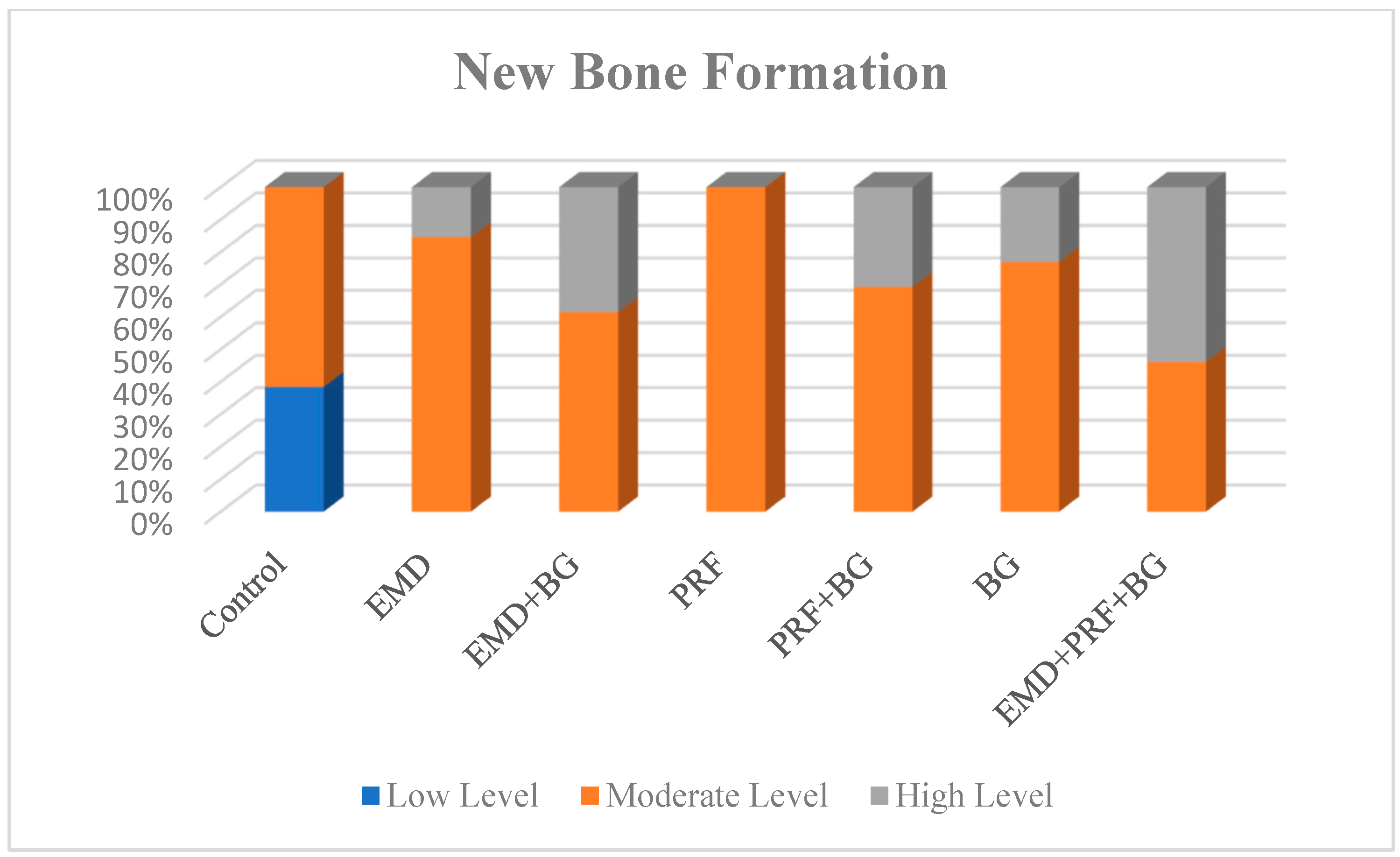 New Bone Formation | Control | EMD | EMD + BG | PRF | PRF + BG | BG | EMD + PRF + BG | |