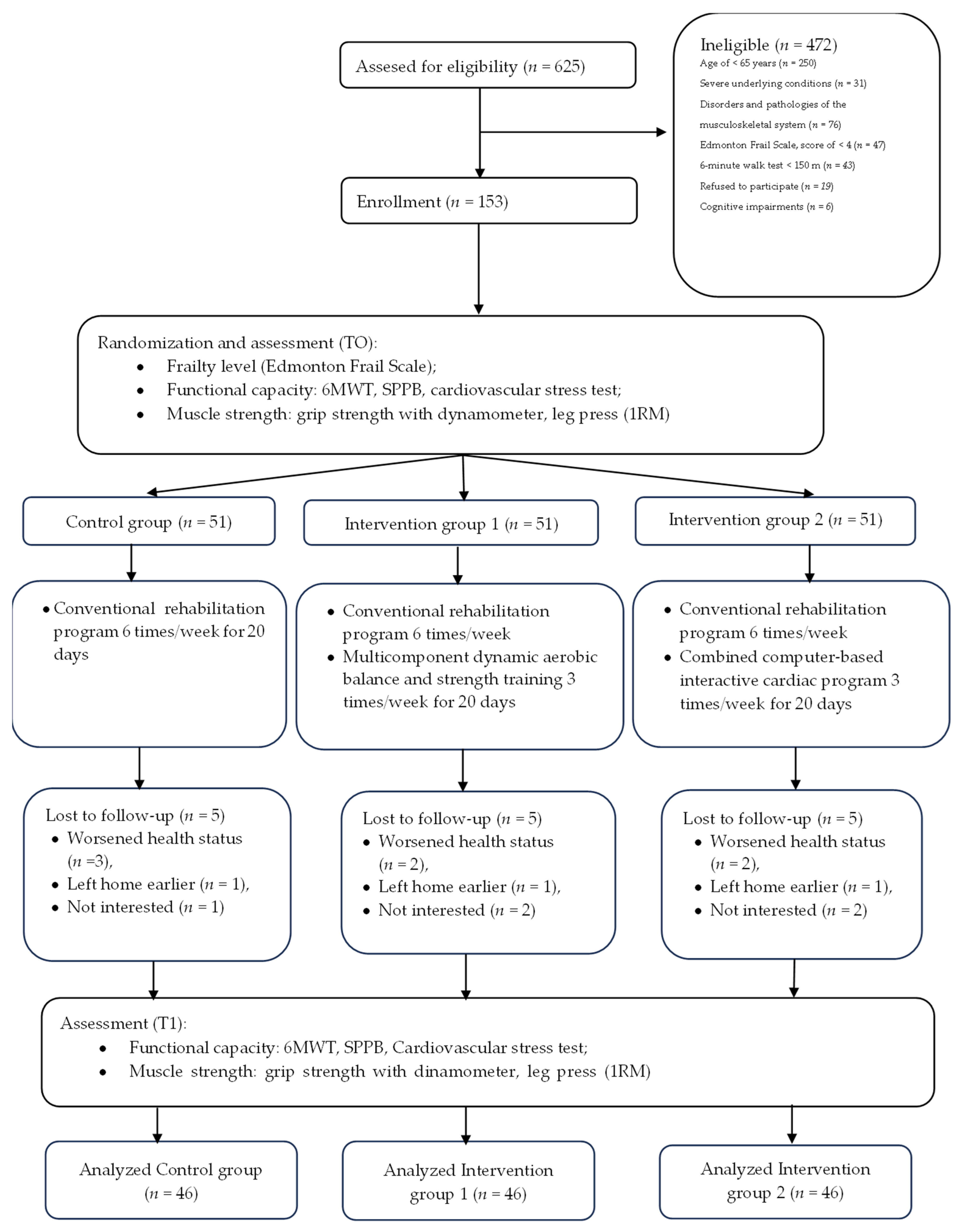 - Stonkuvienė, V.; Kubilius, R.; Lendraitienė, E. Effects of Different Exercise Interventions on Fall Risk and Gait Parameters in Frail Patients After Open Heart Surgery: A Pilot Study. Medicina 2025, 61, 206. [Google Scholar] [CrossRef]