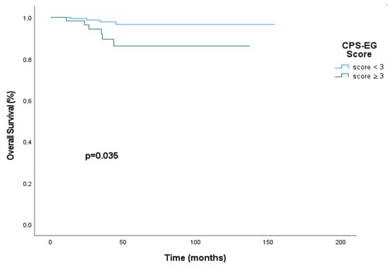 | CPS+EG Score | 0.60 (0.31–1.13) | 0.114 | 0.35 (0.14–0.86) | 0.023 |