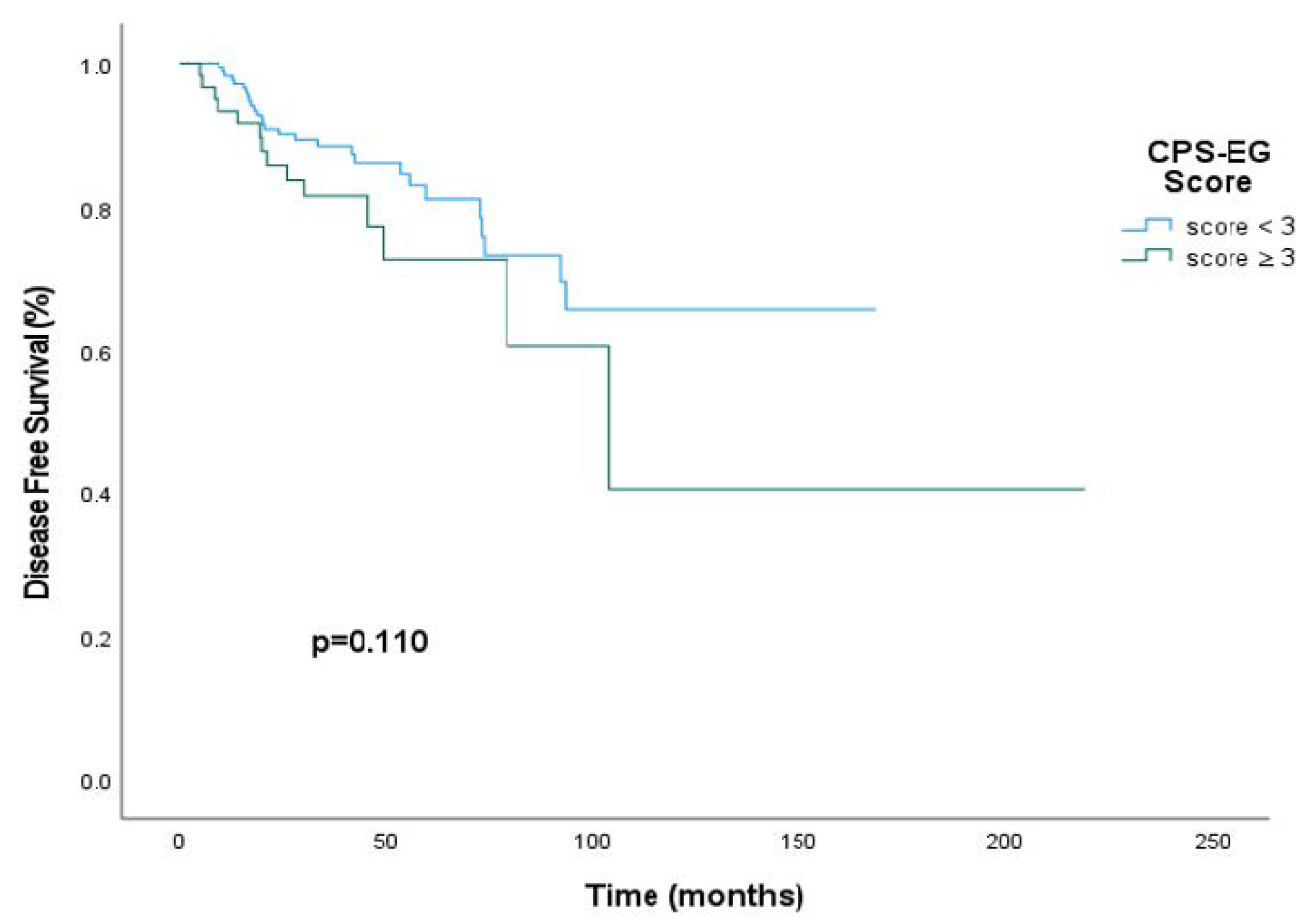 CPS+EG Score | 0.60 (0.31–1.13) | 0.114 | 0.35 (0.14–0.86) | 0.023 |