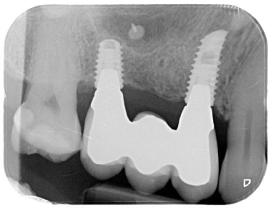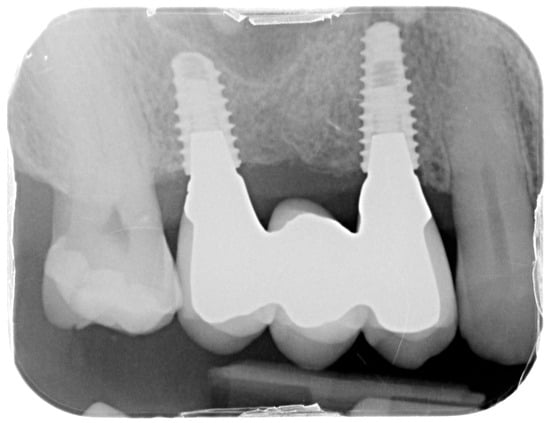 For the evaluation of the mesial and distal MBL, intraoral digital radiographs were taken using the long-cone paralleling technique with the central beam directed to the alveolar crest. Periapical radiographs were taken at the delivery of the prosthesis and after 1 year of prosthetic loading (T2). The mesial and distal MBL, i.e., the distance between the top of the implant shoulder and the first visible bone-to-implant contact, were measured at the mesial and distal aspect with a 10–15× magnification using an image analysis programme (ImageJ v 1.49, NIH, Bethesda, MA, USA). The length of the implant was used as known measure for the calibration and determination of the exact magnification and distortion of the images. All measurements were performed by two examiners to the nearest 0.1 mm. In case of disagreement, the evaluation was re-done and results discussed until an agreement was found.