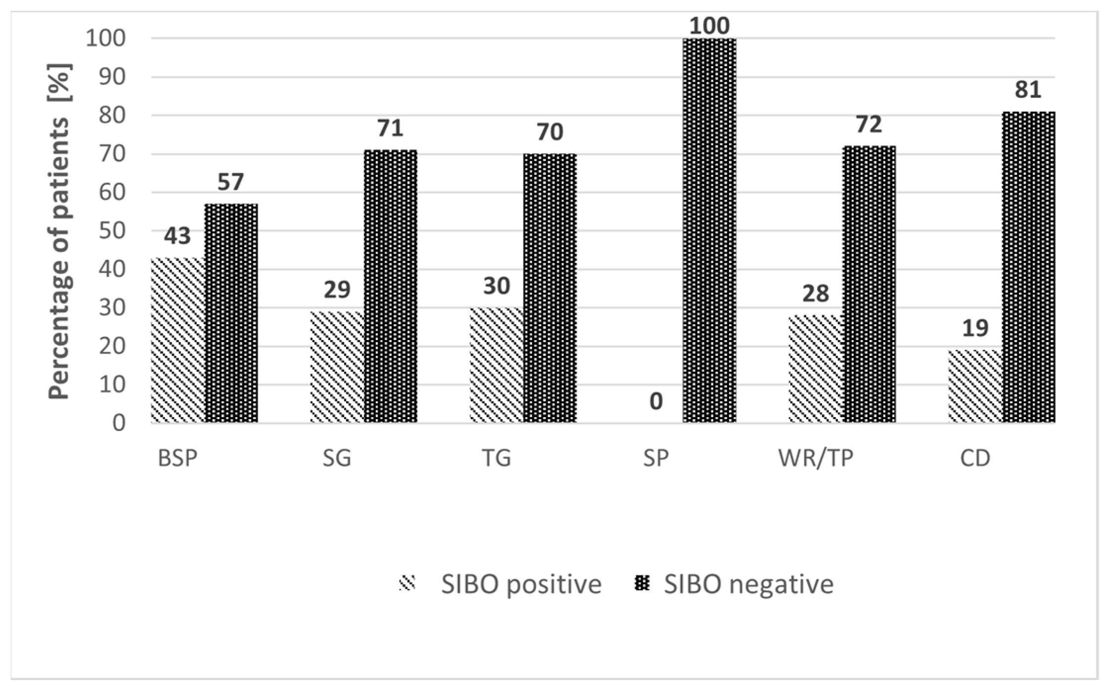 - Miazga, A.; Osiński, M.; Cichy, W.; Zaba, R. Current views on the etiopathogenesis, clinical manifestation, diagnostics, treatment and correlation with other nosological entities of SIBO. Adv. Med. Sci. 2015, 60, 118–124. [Google Scholar] [CrossRef] [PubMed]