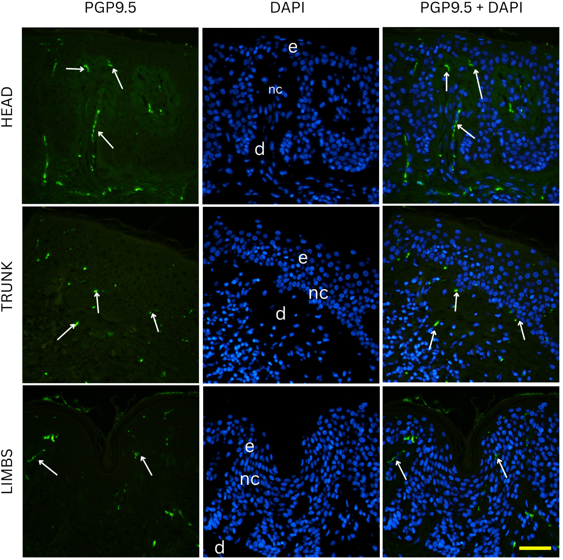 22]. The variability observed with PGP 9.5 is more likely attributable to other neuronal subsets, such as non-peptidergic sensory fibers or autonomic fibers, which are not captured by CGRP immunostaining [