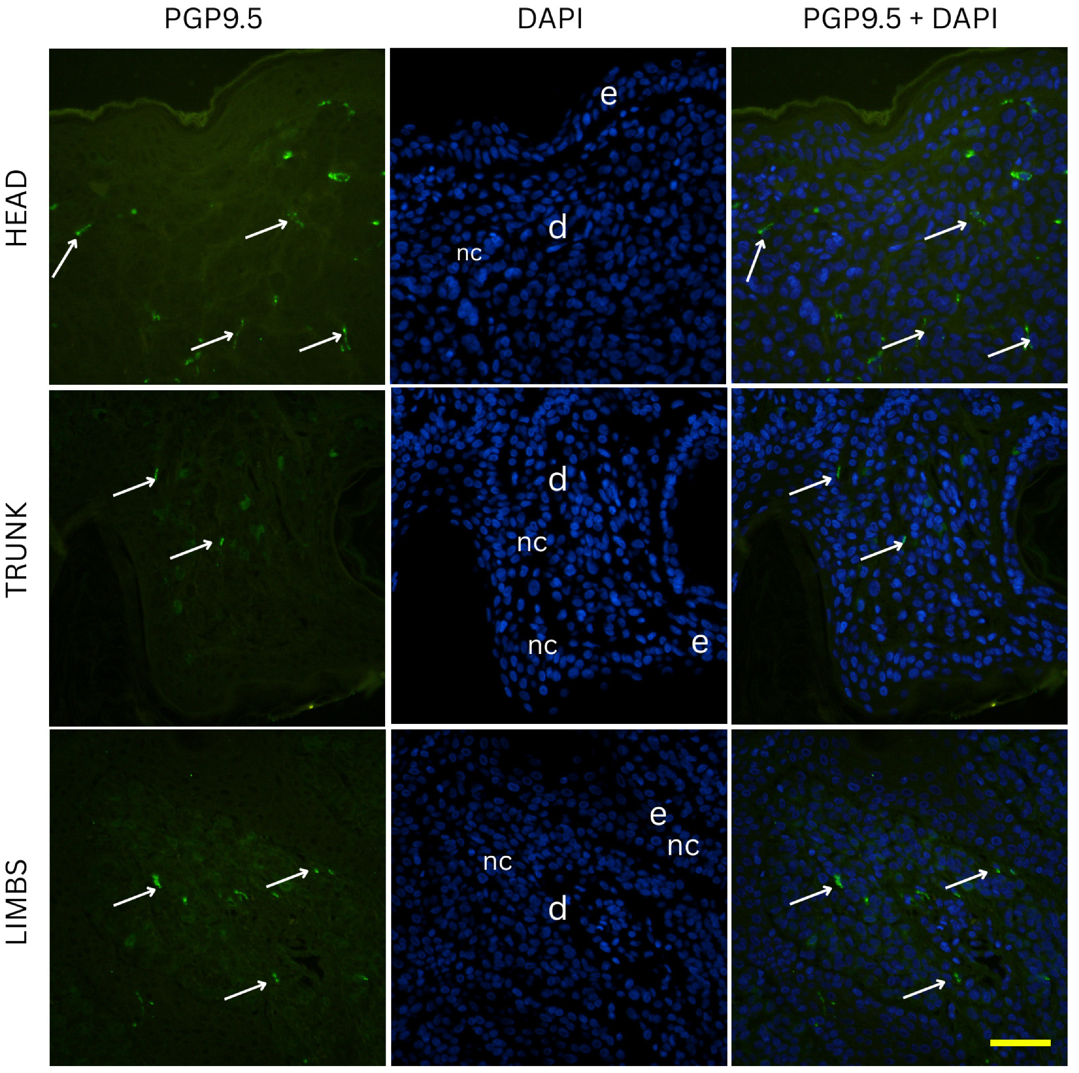 19]. While those results pertain to mechanoreceptors and tactile units, they reflect the broader trend that cranial skin is more densely innervated than trunk or limb skin.