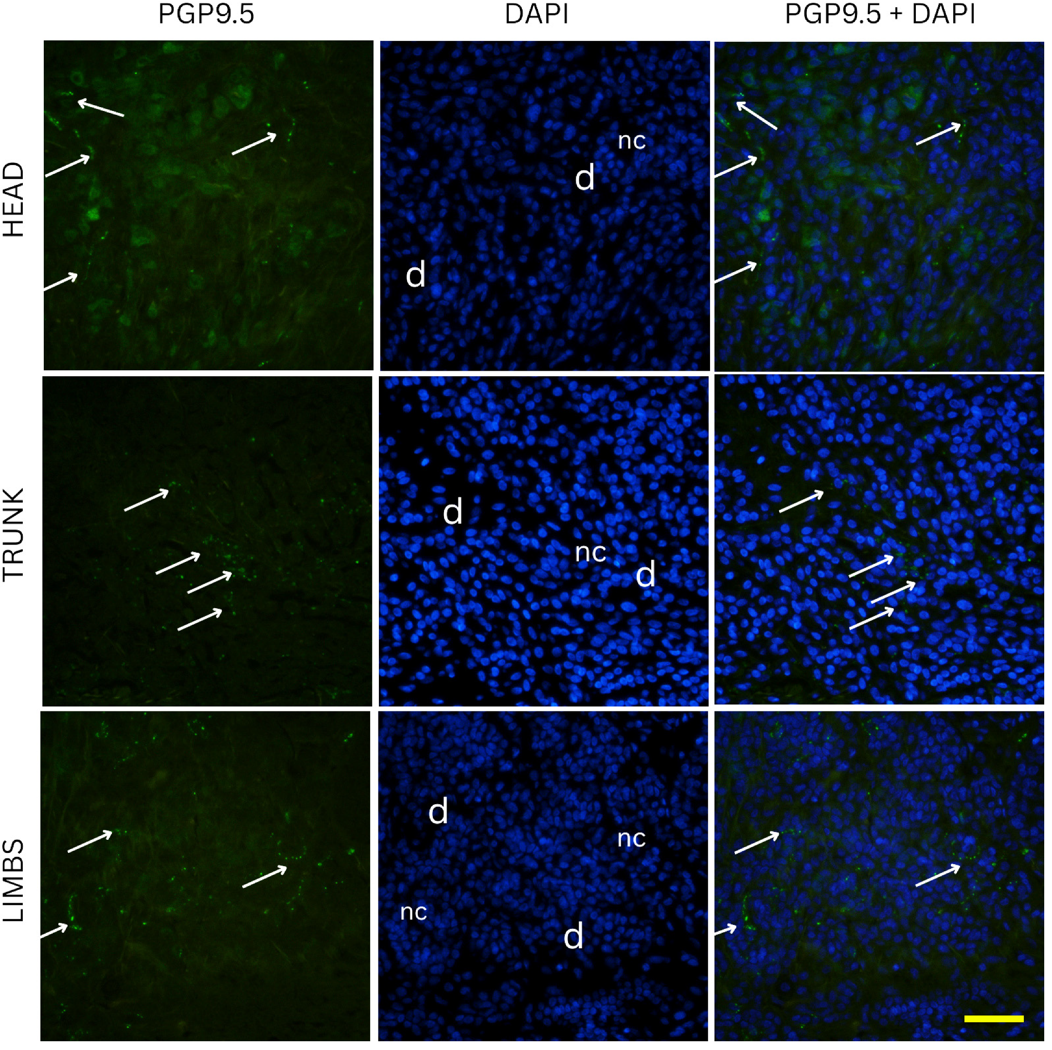 27]. Together, these results highlight that the observed heterogeneity in nevus innervation arises primarily from other neuronal subsets, and future studies incorporating additional markers will be necessary to fully characterize these differences.