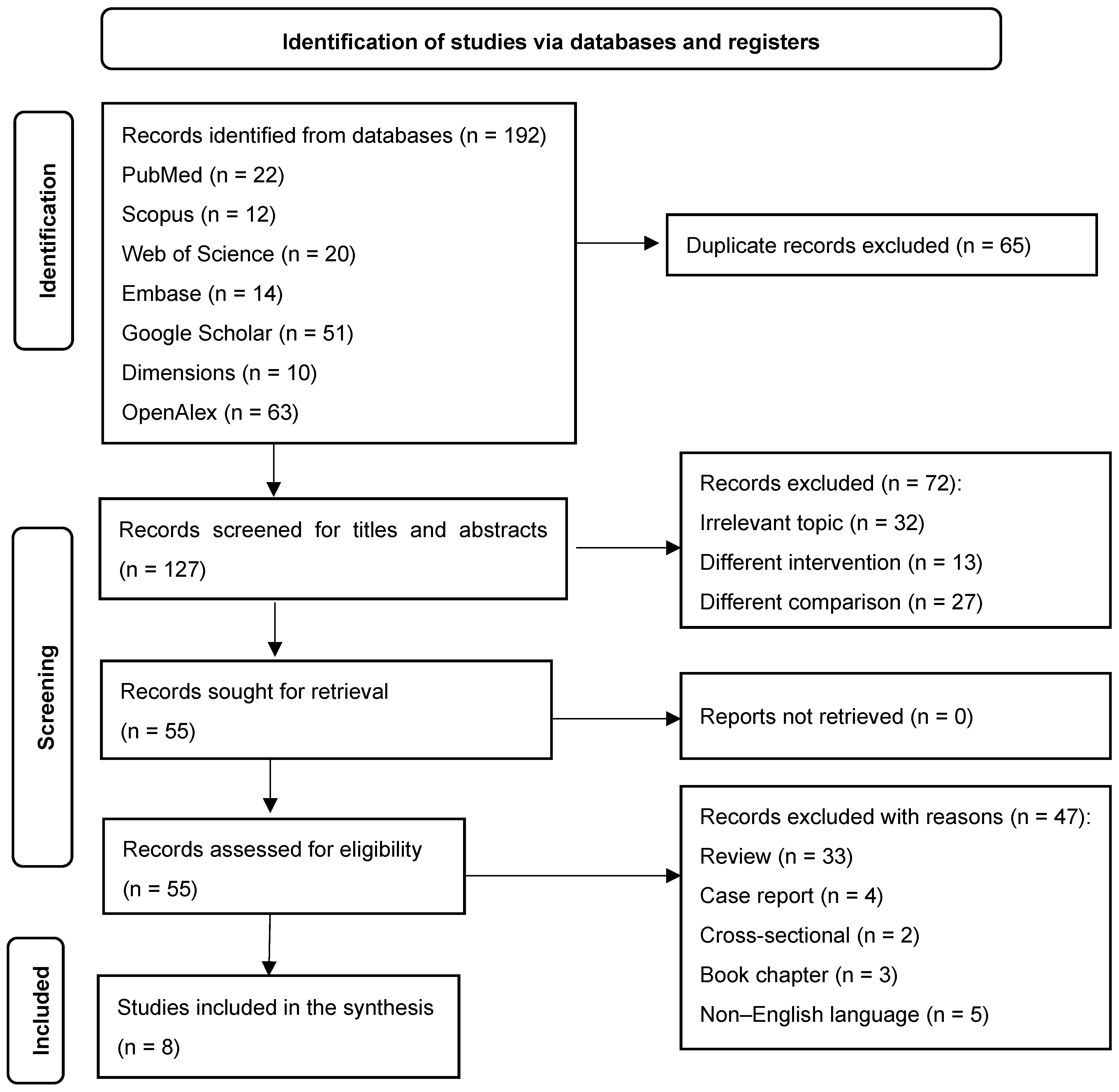Dimensions | 22 September 2024 | (“Neck pain” OR “Cervical pain”) AND (“deep dry needling” OR “Superficial dry needling”) AND (“Trigger point*” OR “Myofascial pain syndrome”) | 10 |