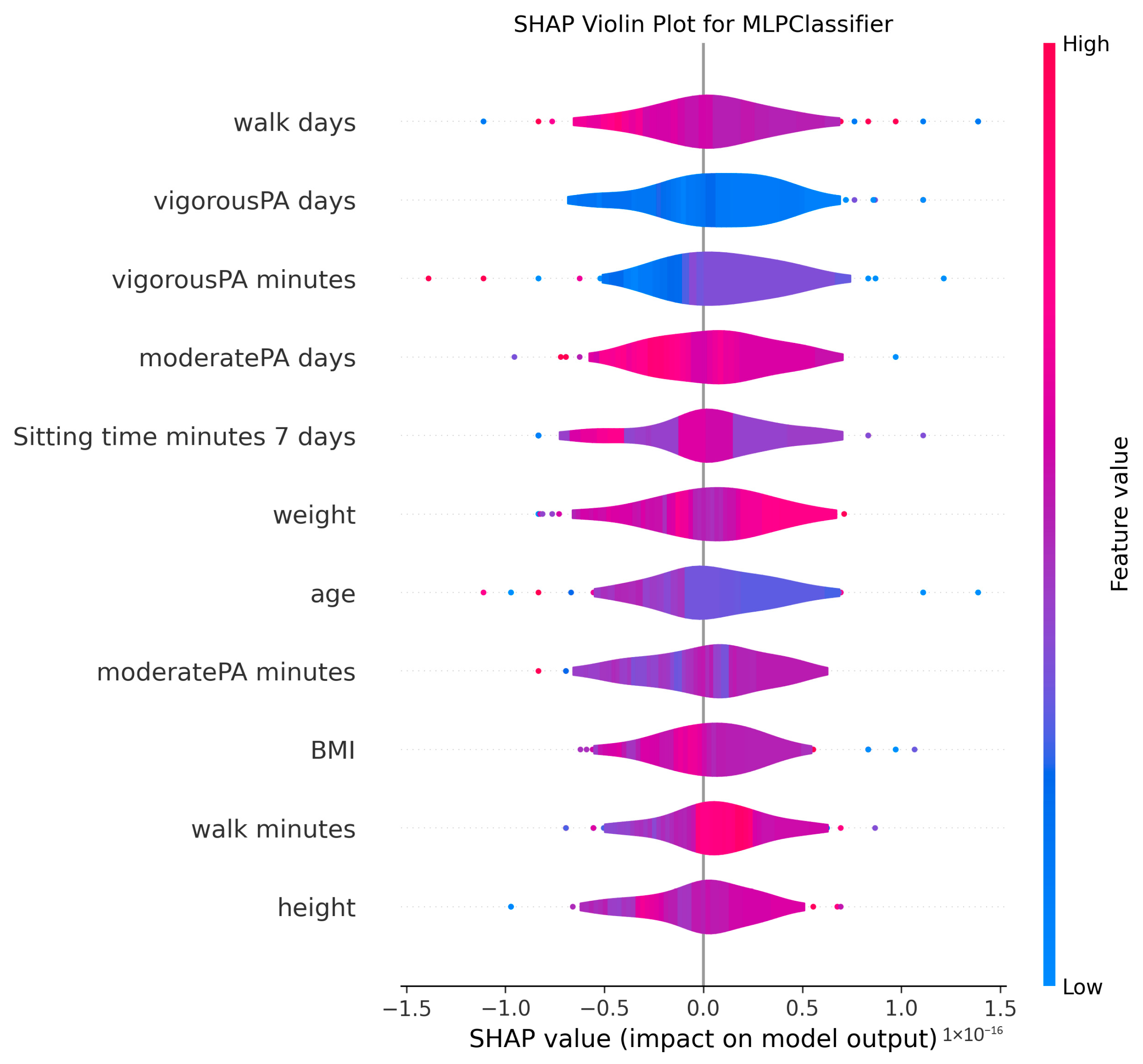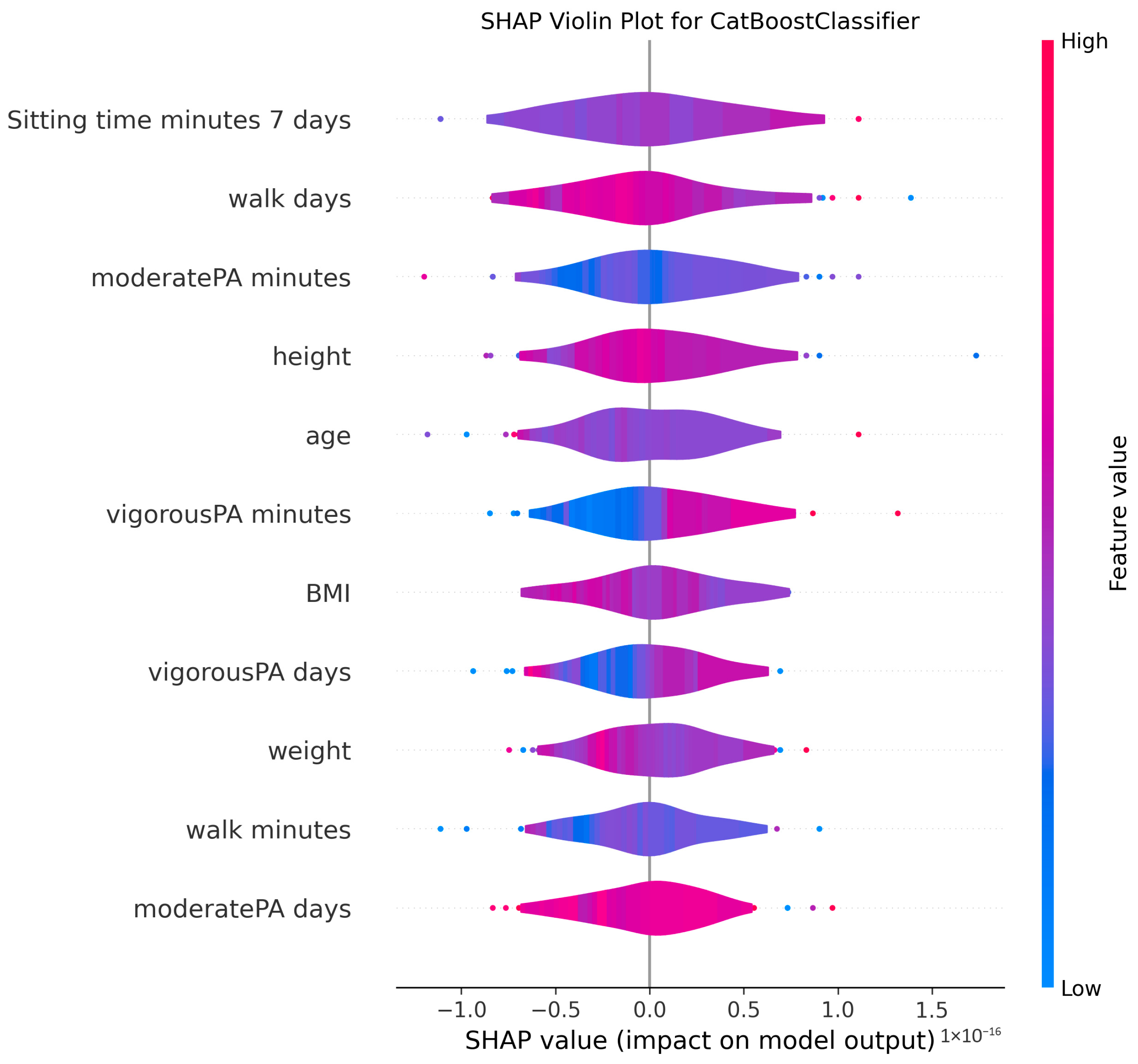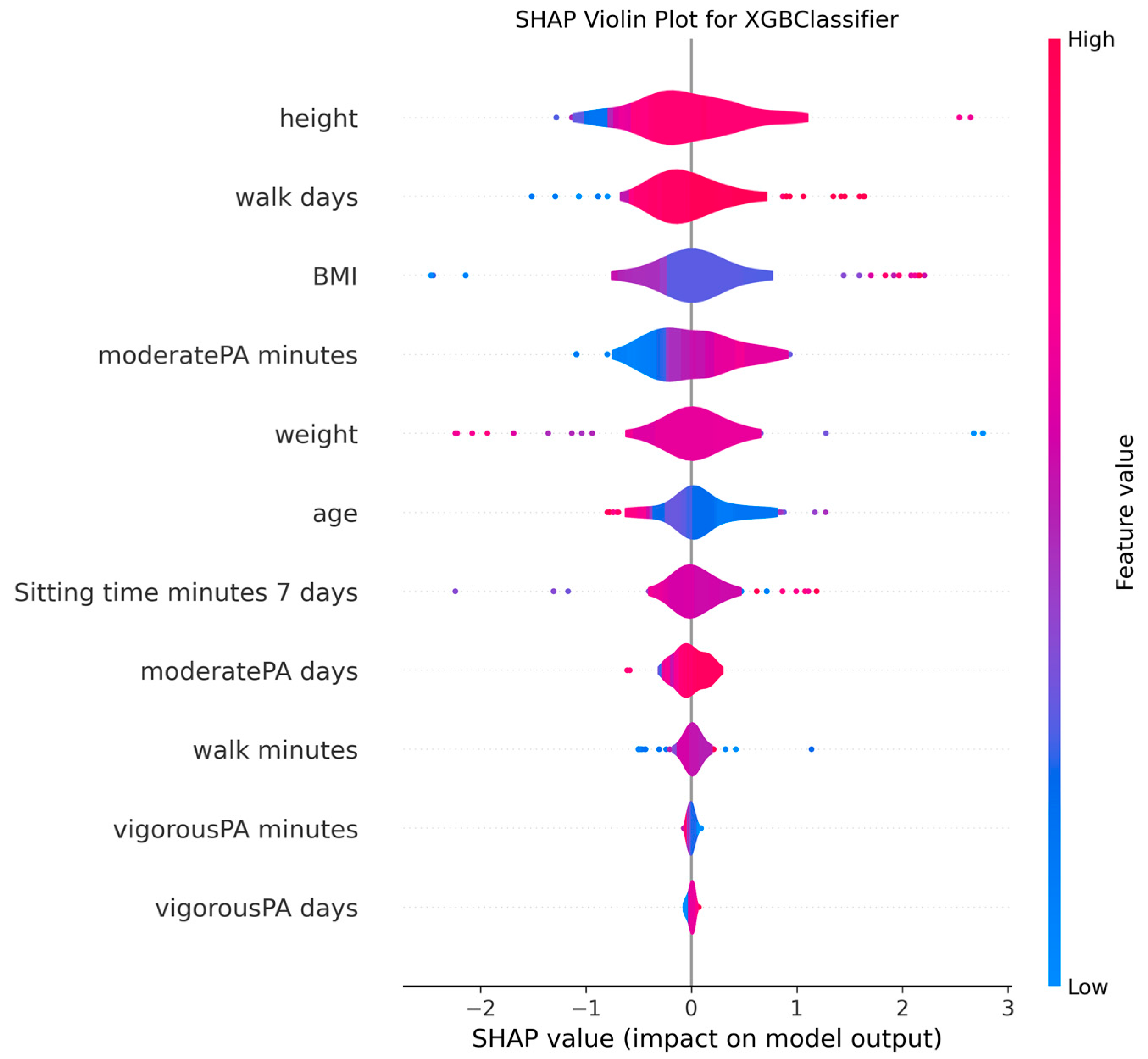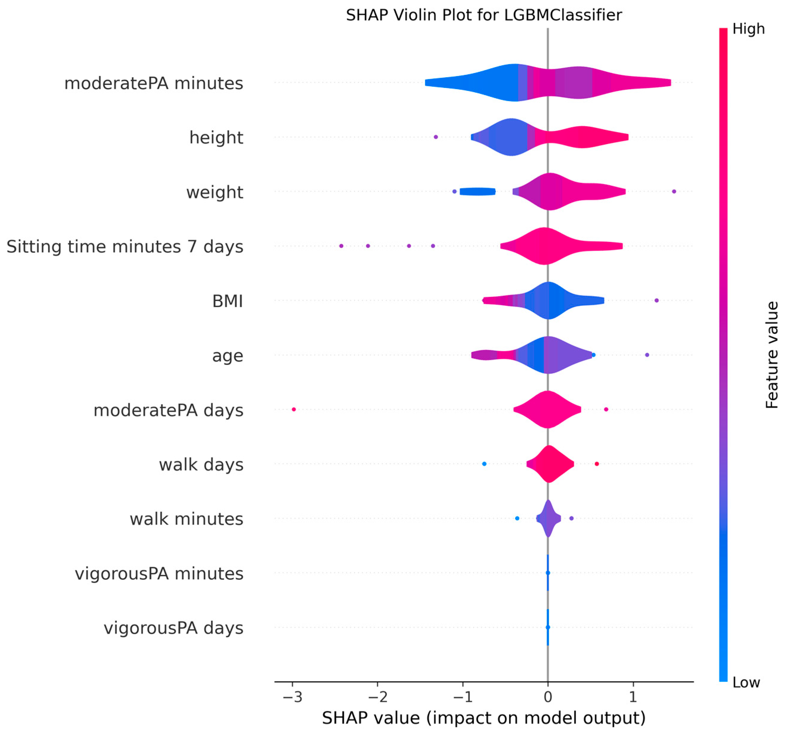 - Moderate physical activity duration (moderatePA minutes): Weekly duration of moderate-intensity physical activity (in minutes).
