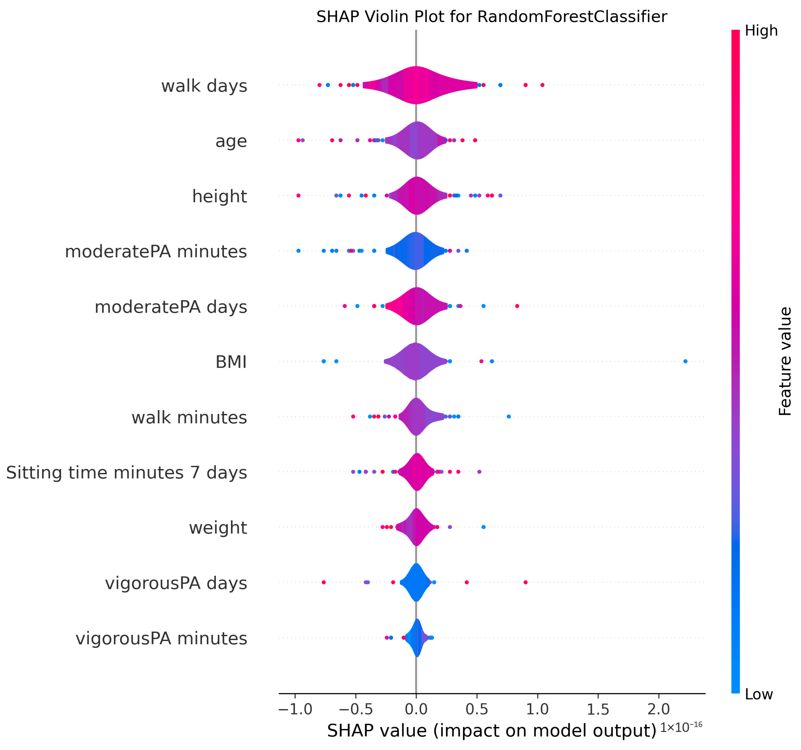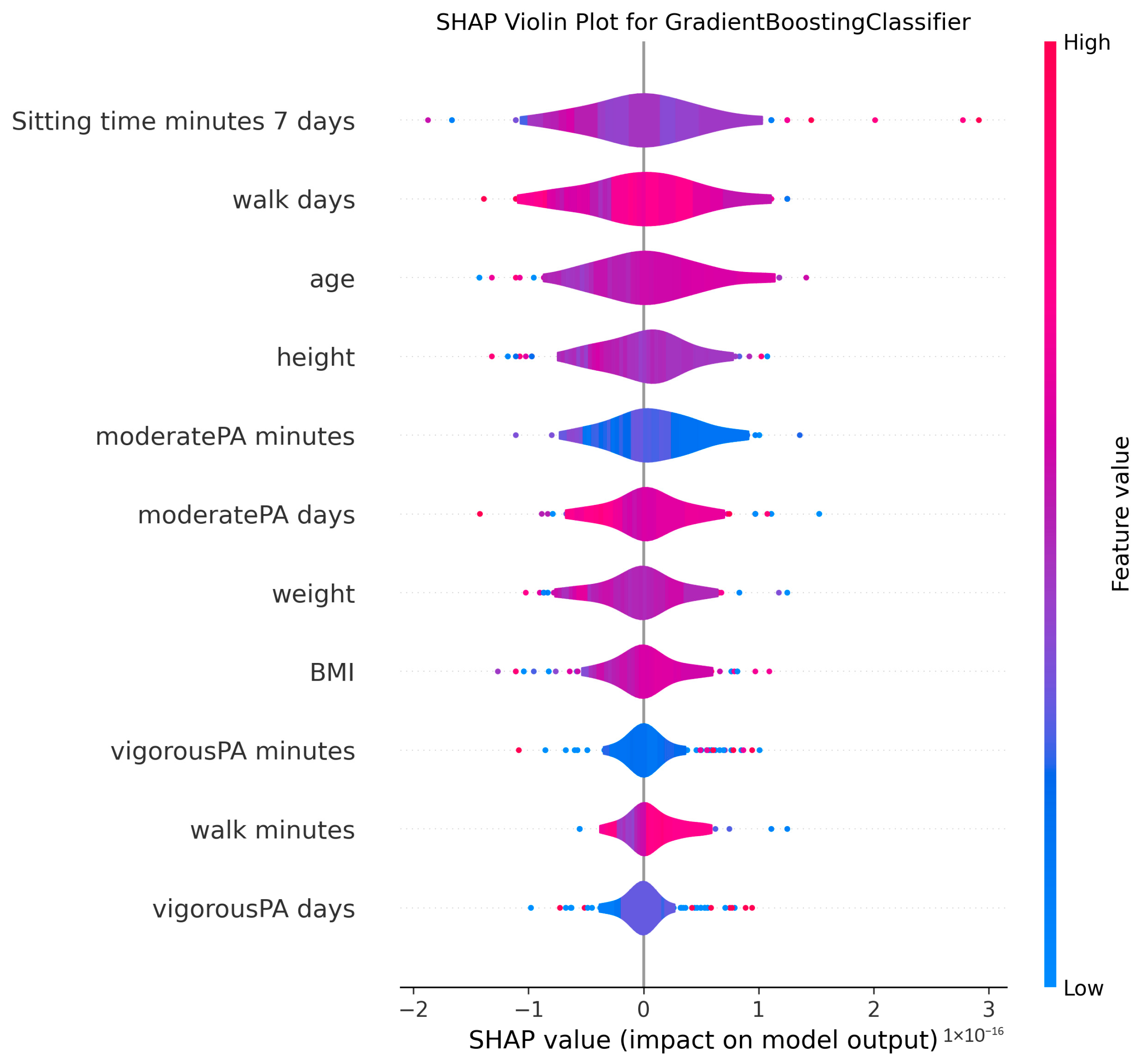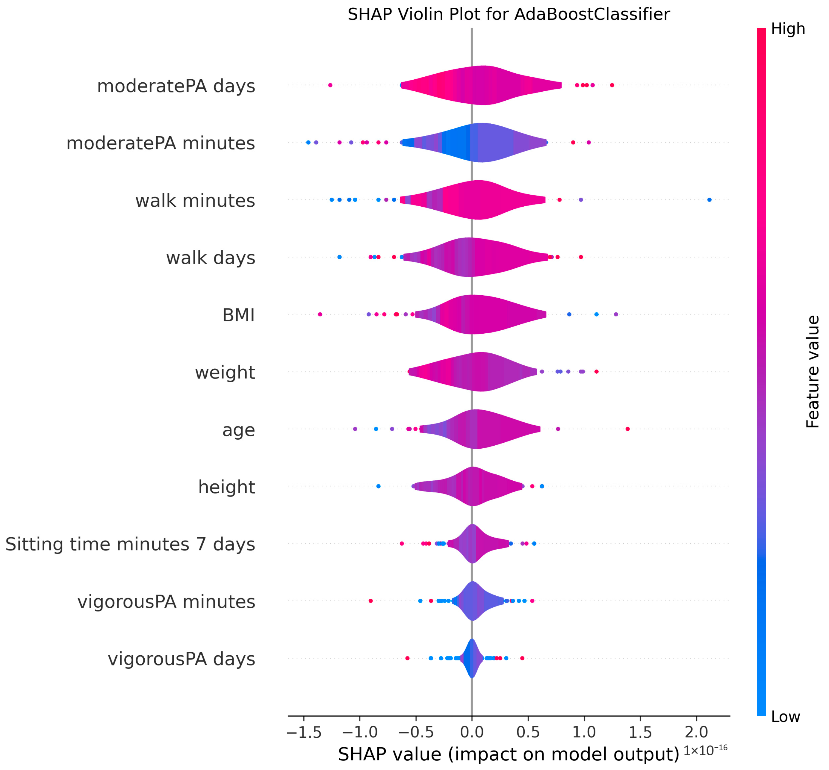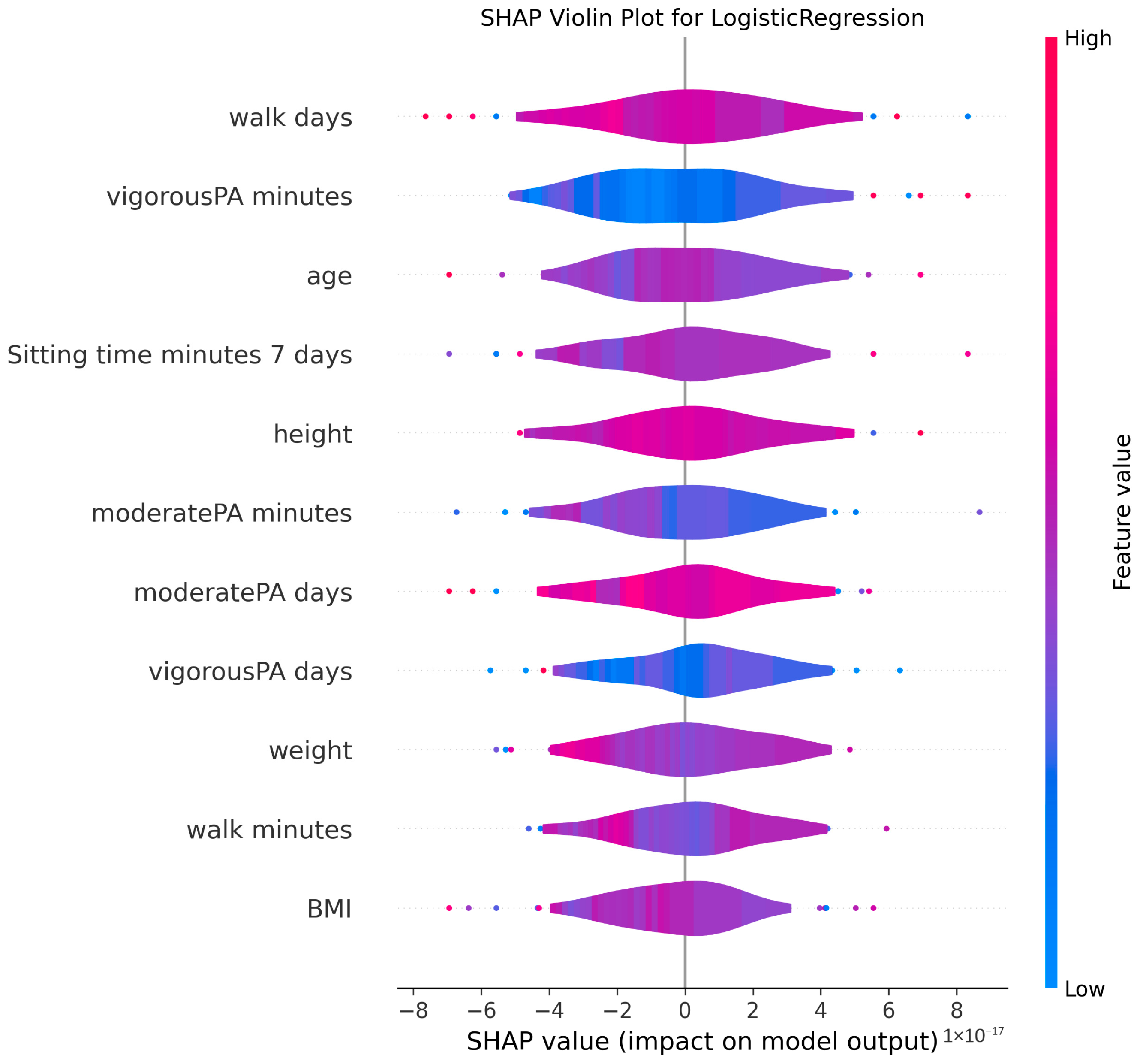 - Moderate physical activity duration (moderatePA minutes): Weekly duration of moderate-intensity physical activity (in minutes).
