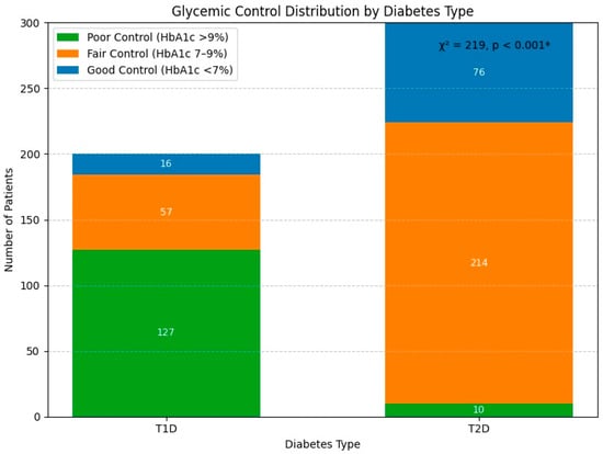 Glycemic control distribution by diabetes type.