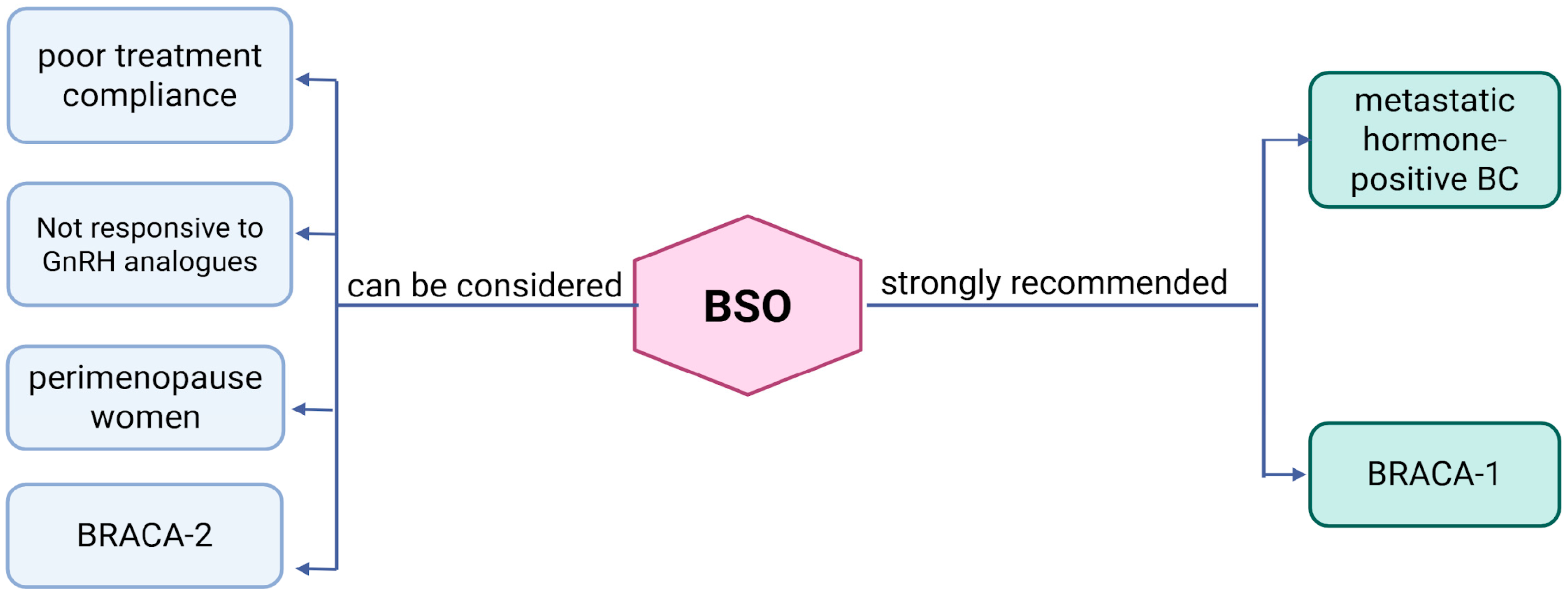 - BSO is appropriate for patients with metastatic hormone receptor-positive BC.
