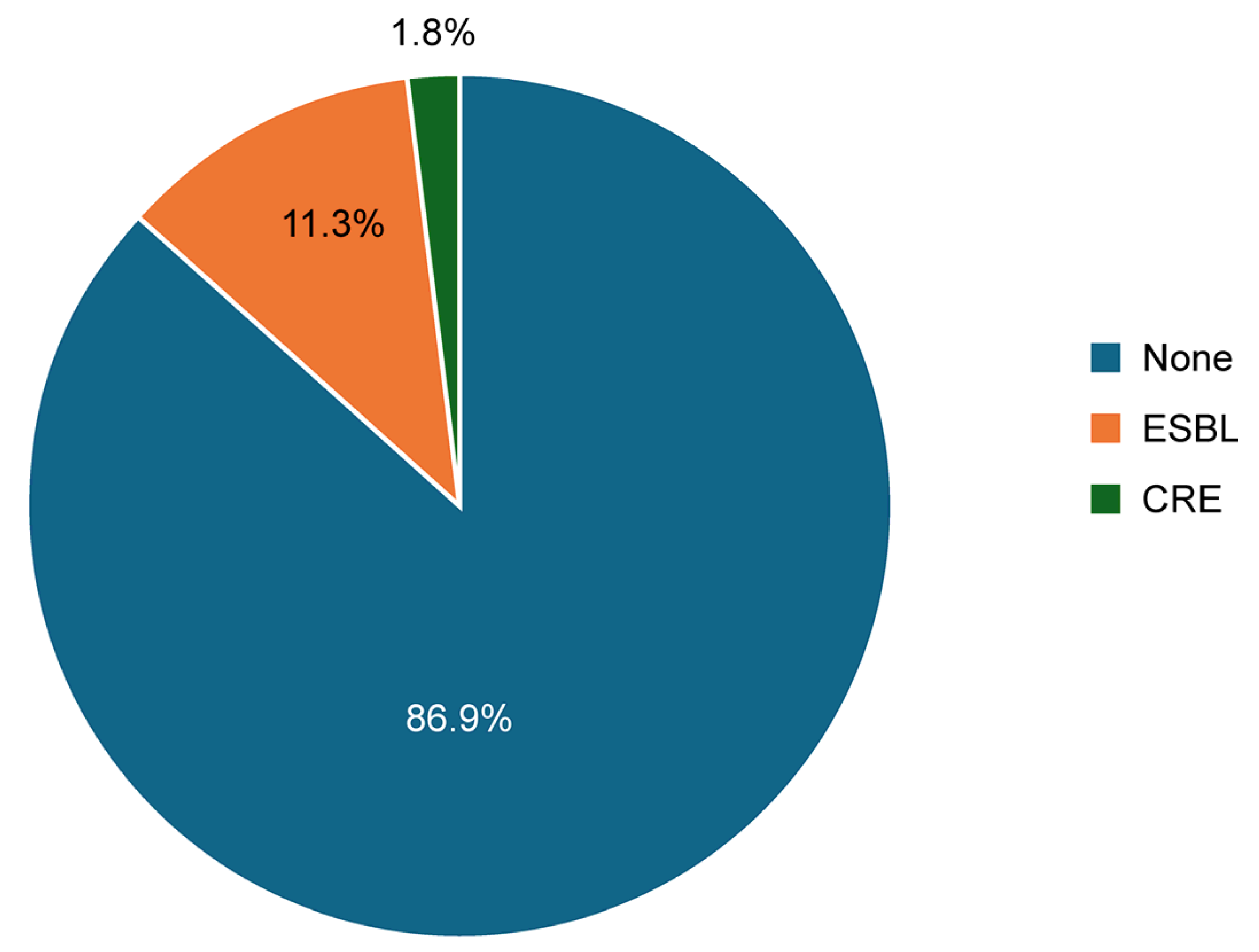 Figure 1. Rate of ESBL-producing Enterobacterales and CRE among the studied population.
