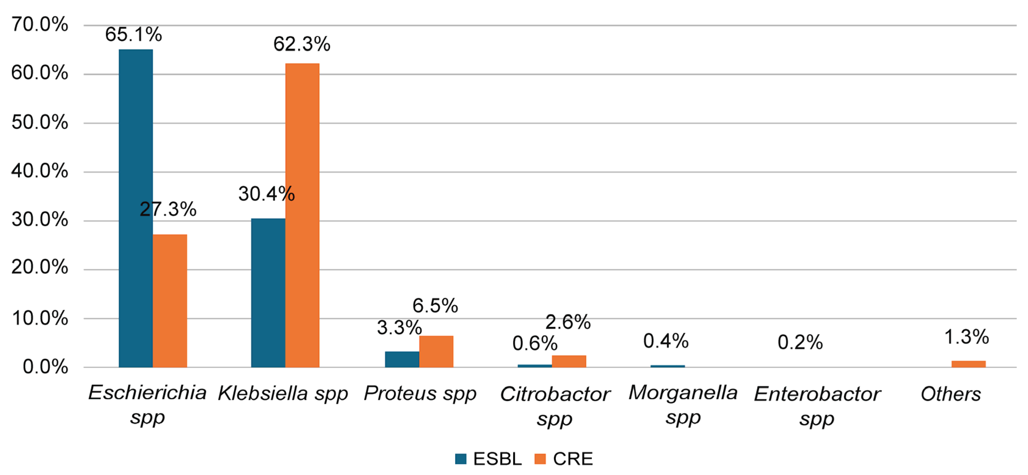Figure 3. Prevalence of ESBL and CRE according to bacterial species in the present study.