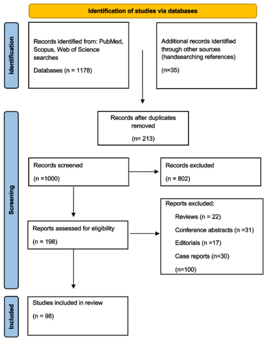 This narrative review was conducted to summarize and critically appraise the current evidence on thermal ablation as a non-surgical alternative for thyroid nodules. A comprehensive literature search was performed in PubMed, Scopus, and Web of Science for studies published between January 2000 and September 2025. The following search terms were used: “thermal ablation” OR “radiofrequency ablation” OR “microwave ablation” OR “laser ablation” combined with “thyroid nodule” OR “thyroid tumor” OR “thyroid neoplasm”. All peer-reviewed original articles, clinical trials, cohort studies, and large case series reporting clinical outcomes of thermal ablation for thyroid nodules were considered eligible. Only studies published in English were included. Reviews, conference abstracts, editorials, and single case reports with fewer than 10 patients were excluded. The search and selection process identified 98 eligible studies, which were included in the final narrative synthesis. Due to heterogeneity in study design, patient populations, and outcome measures, no quantitative meta-analysis was performed. Instead, findings were synthesized narratively, with emphasis on treatment efficacy, safety, long-term outcomes, and comparative advantages of different thermal ablation modalities. The Flowchart illustrates the study selection process (Figure 1).