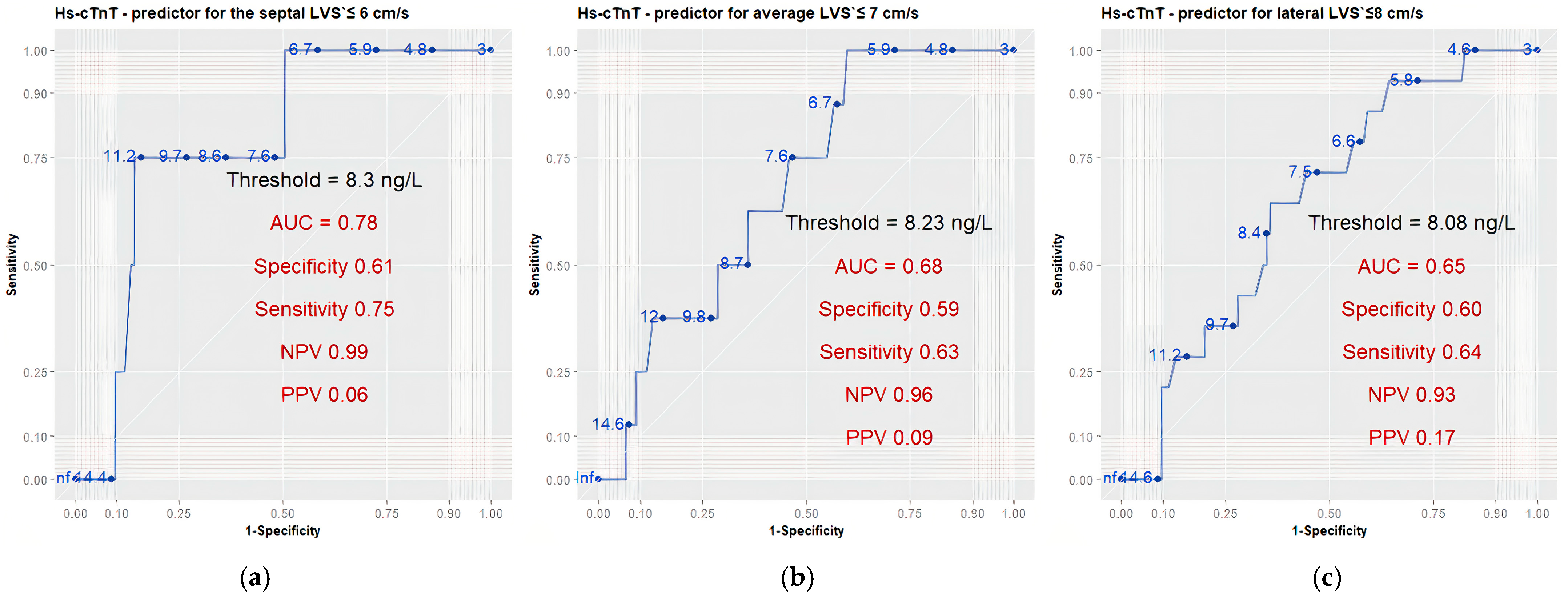 4.4. Predictive Ability of hs-cTnT and Cut-Off Values