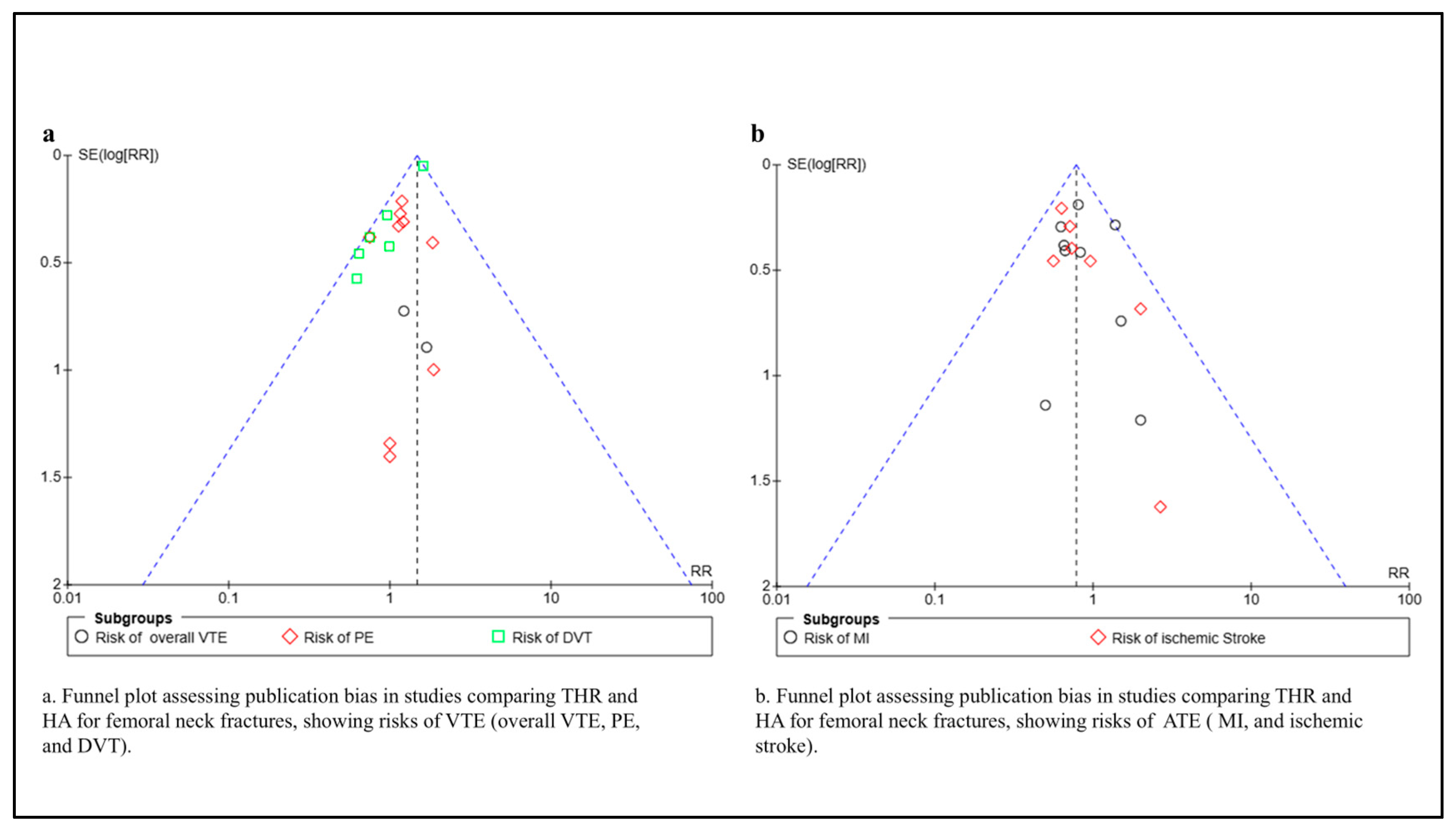 APA StyleHakami, I. A., Altammar, M. A., Alaklabi, S. A., Alotaibi, M. M., Almunyif, S. N., Alshuwaier, M. I., Alobaysi, S. T., Aldalbahi, S. S., Alotaibi, A. H., Alotaibi, M. M., Alobaysi, O. S., Aladhyani, M. T., & Jareebi, M. A. (2025). Thromboembolic Risk After Total Hip Replacement Versus Hemiarthroplasty in Femoral Neck Fracture Patients: A Systematic Review and Meta-Analysis. Medicina, 61(11), 1929. https://doi.org/10.3390/medicina61111929