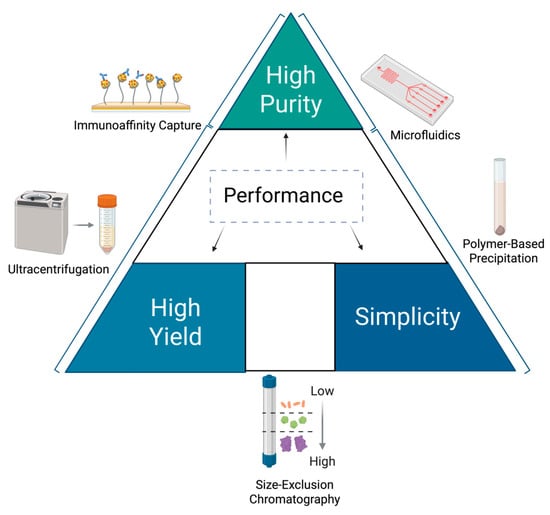 Method selection for exosome isolation based on purity, yield, and simplicity.