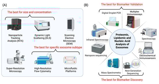 Comprehensive analytical methods available for physical characterization (A) and molecular analysis (B) of exosomes.