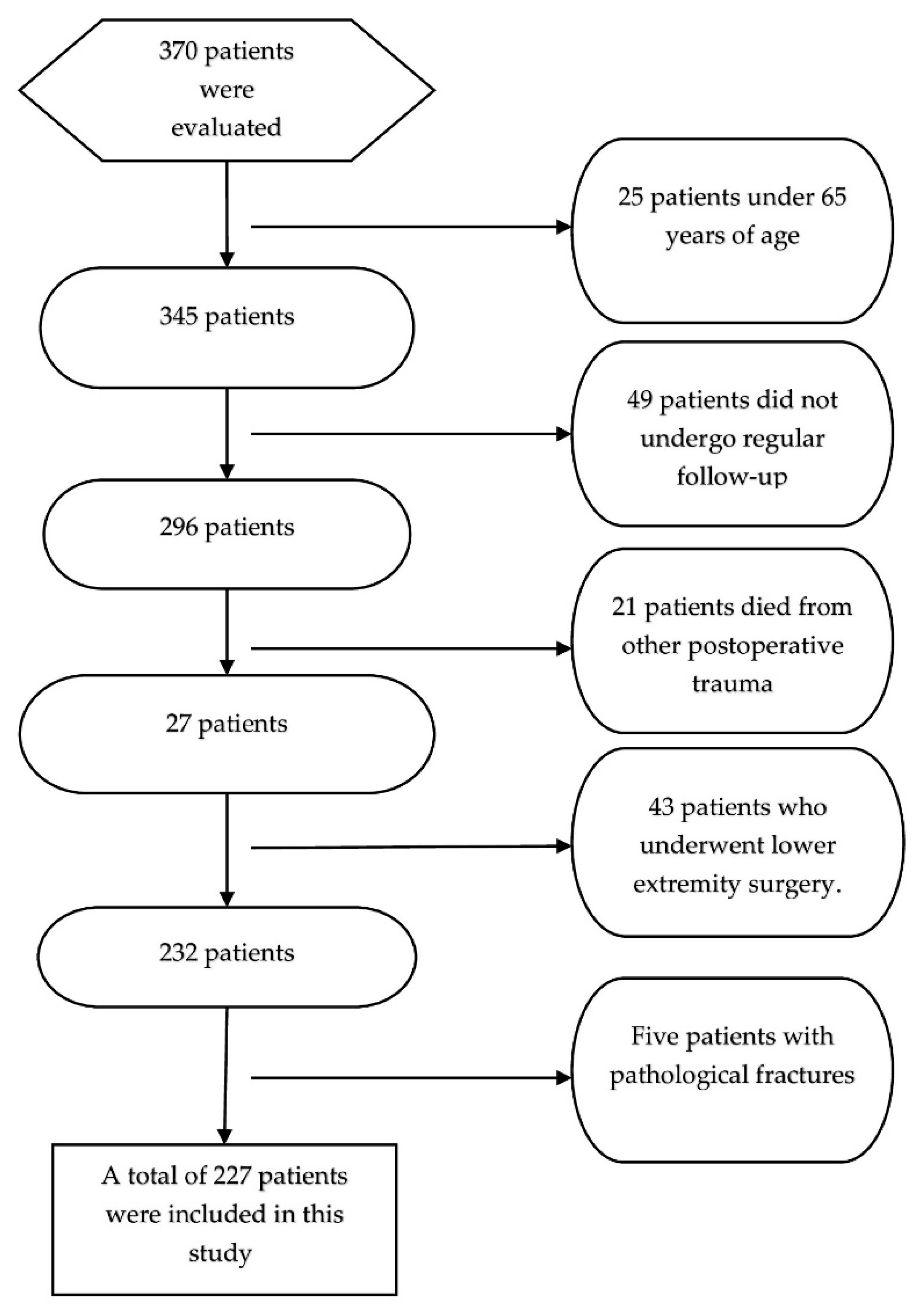 - Bilsel, K.; Erdil, M.; Gulabi, D.; Elmadag, M.; Cengiz, O.; Sen, C. Factors affecting mortality after hip fracture surgery: A retrospective analysis of 578 patients. Eur. J. Orthop. Surg. Traumatol. 2013, 23, 895–900. [Google Scholar] [CrossRef]
