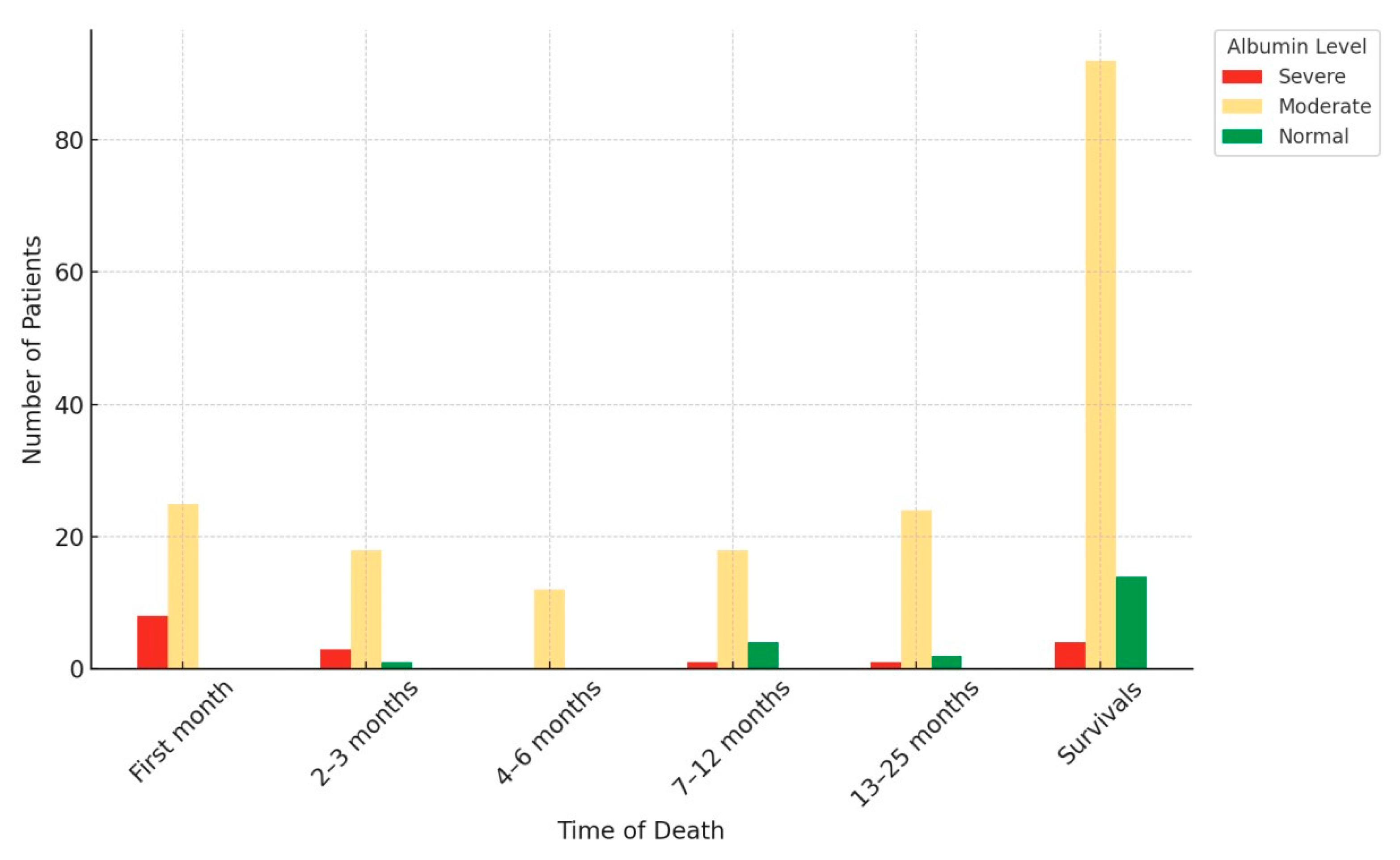 | Albumin > 29.6 | 116 (72.5) | 28 (41.8) |