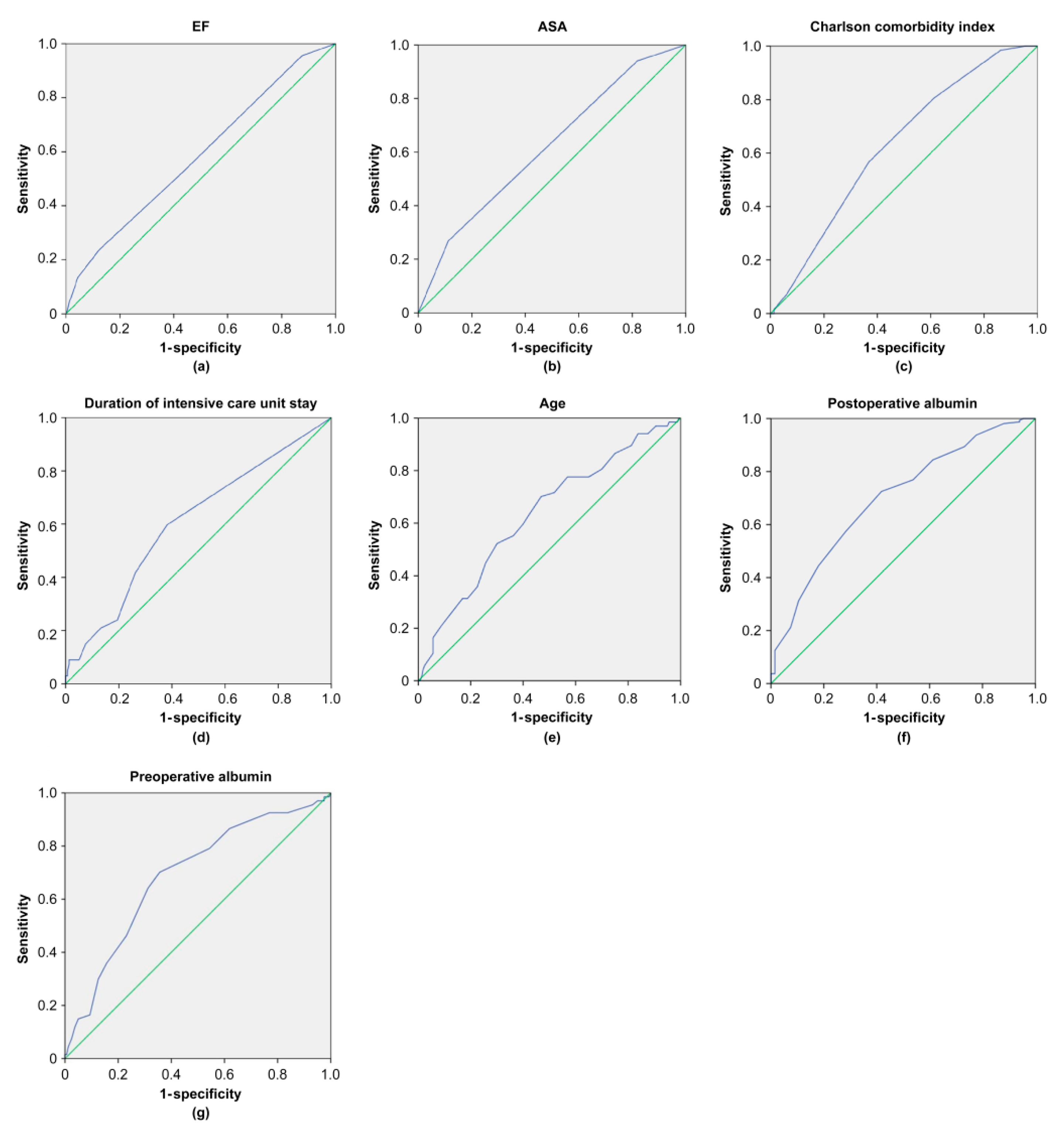 | Postoperative albumin | 0.700 (0.626–0.774) | 0.001 | 2.95 | 72.5 | 58.2 | 0.307 |