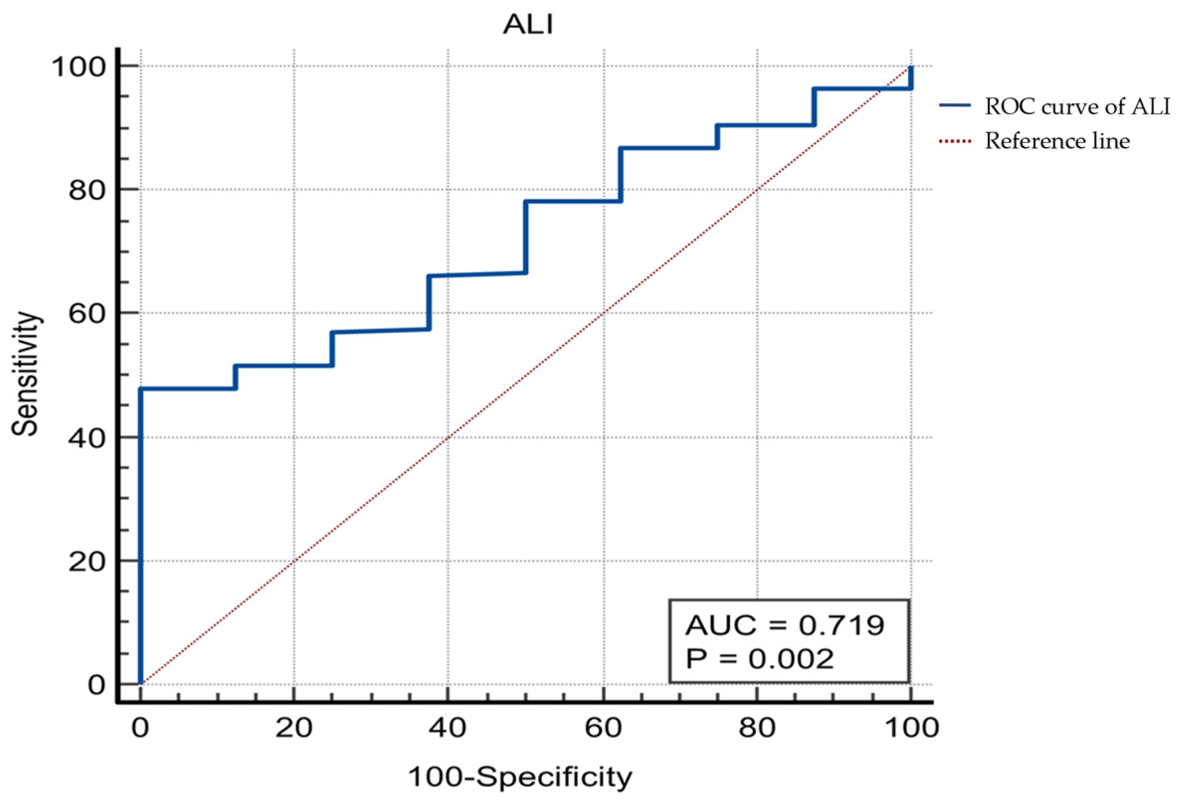 | ALI group | >20.8 * | 0.001 | 2.077 | 1.477 | 2.920 |