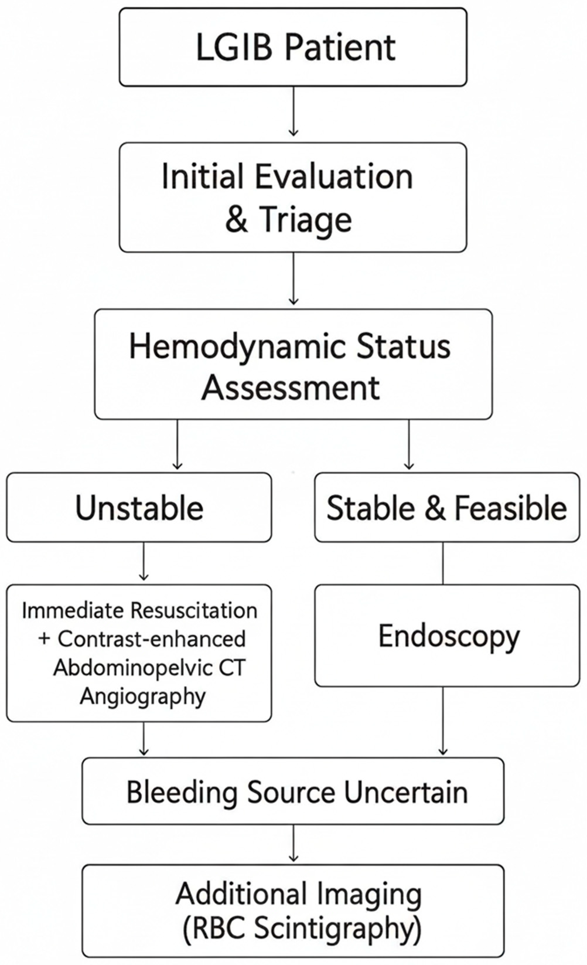 - Sengupta, N.; Feuerstein, J.D.; Jairath, V.; Shergill, A.K.; Strate, L.L.; Wong, R.J.; Wan, D. Management of Patients With Acute Lower Gastrointestinal Bleeding: An Updated ACG Guideline. Am. J. Gastroenterol. 2023, 118, 208–231. [Google Scholar] [CrossRef] [PubMed]