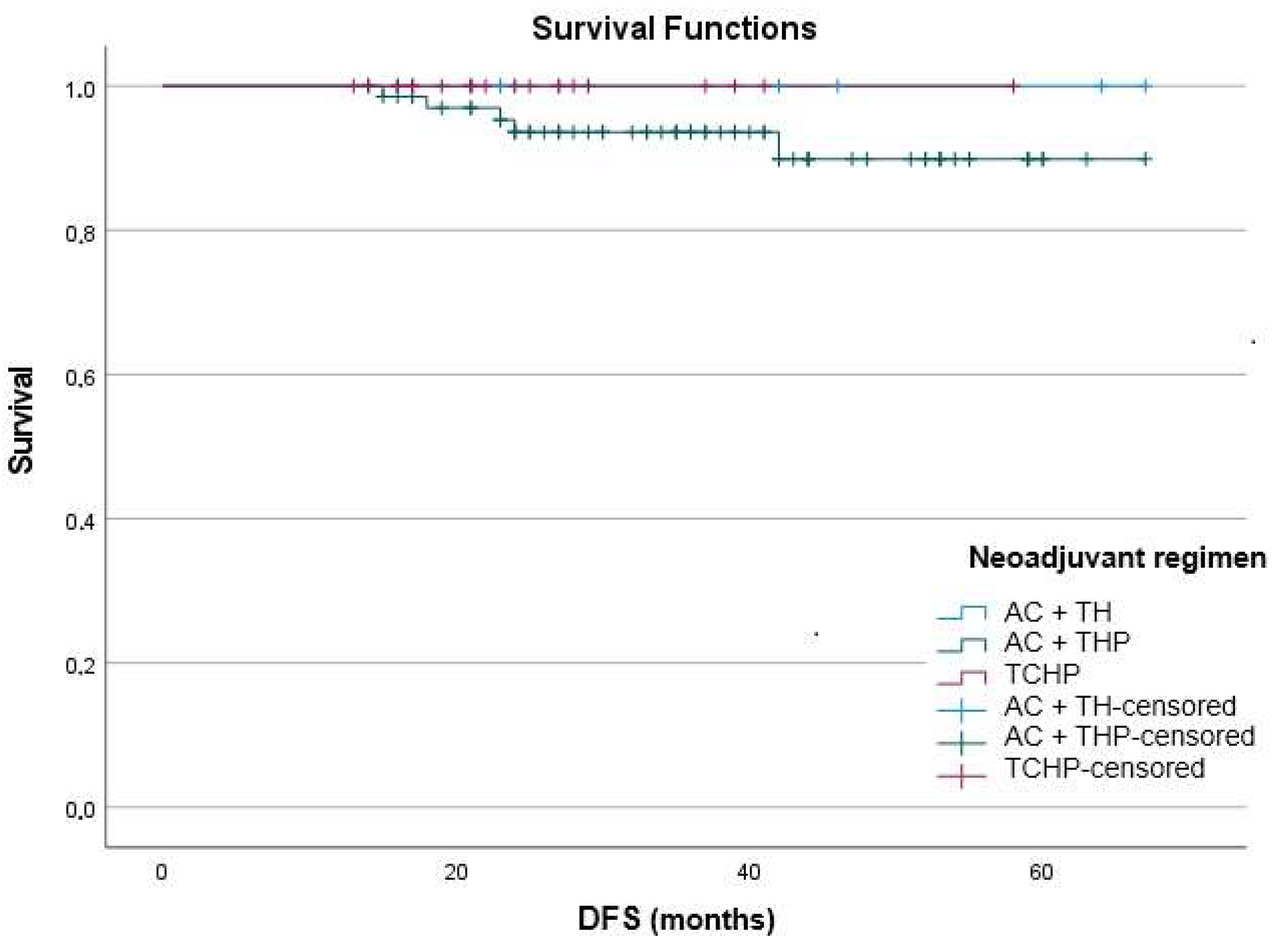 An important observation was the absence of progression events in the small subgroup treated with TCHP, suggesting the potential effectiveness of this anthracycline-free regimen. This aligns with BCIRG-006, which demonstrated comparable efficacy but reduced cardiotoxicity when anthracyclines were omitted [