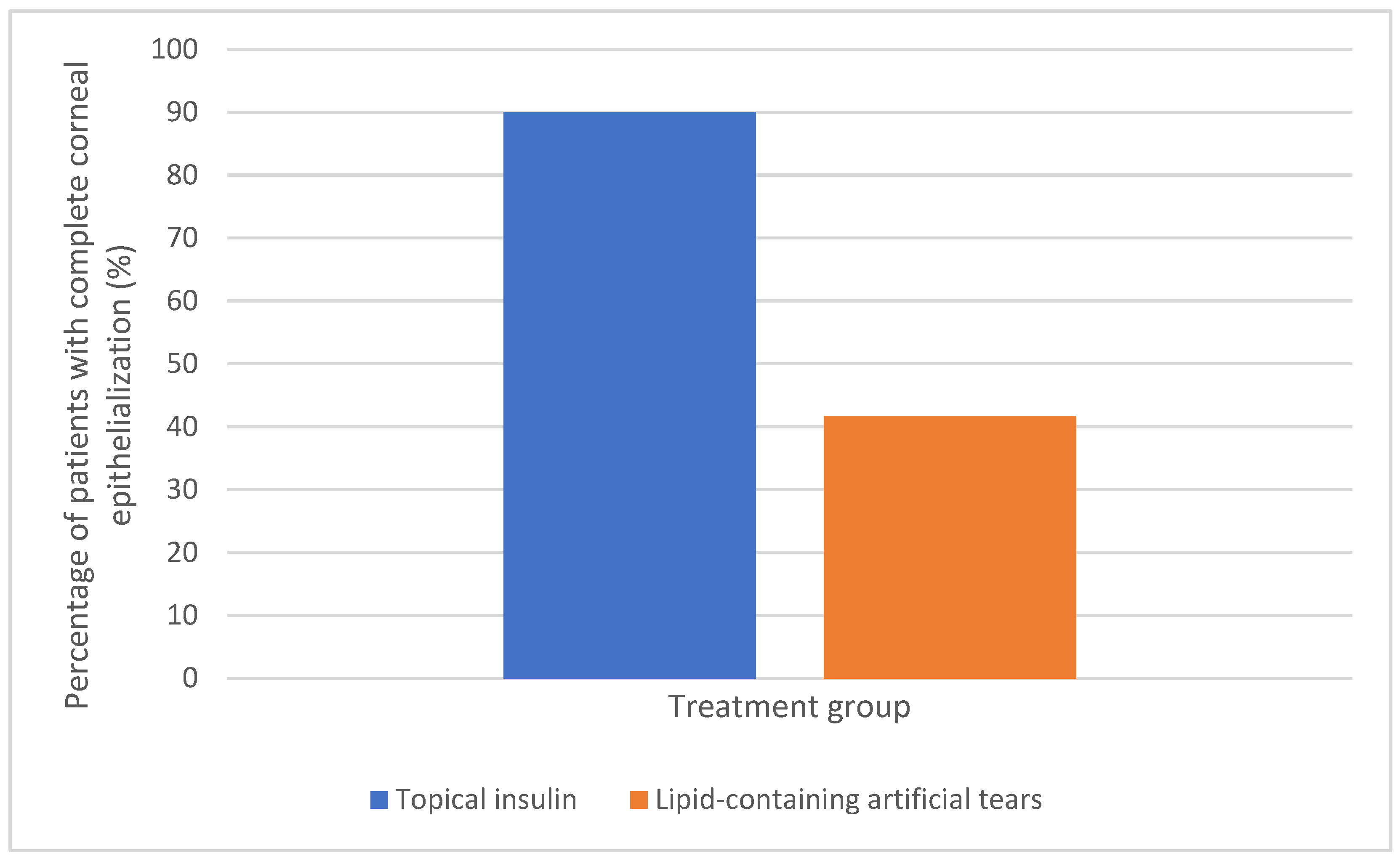 - Dasrilsyah, A.M.; Wan Abdul Halim, W.H.; Mustapha, M.; Tang, S.F.; Kaur, B.; Ong, E.Y.; Bastion, M.L.C. Randomized Clinical Trial of Topical Insulin Versus Artificial Tears for Healing Rates of Iatrogenic Corneal Epithelial Defects Induced During Vitreoretinal Surgery in Diabetics. Cornea 2023, 42, 1395–1403. [Google Scholar] [CrossRef]